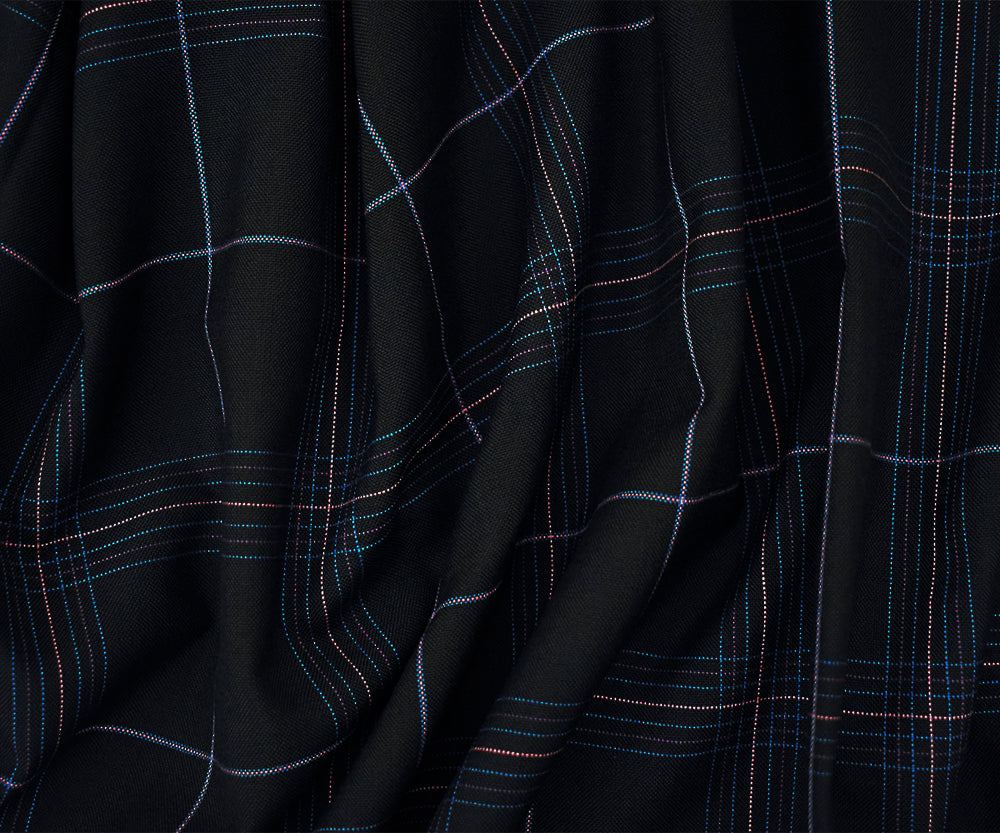 Black-Pink-Multi Poly-Wool Plaid Shirting Woven Suiting Fabric
