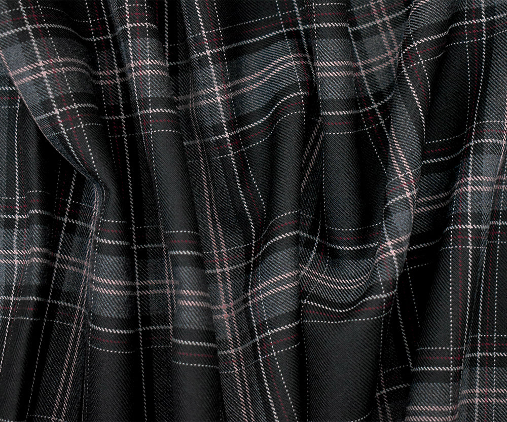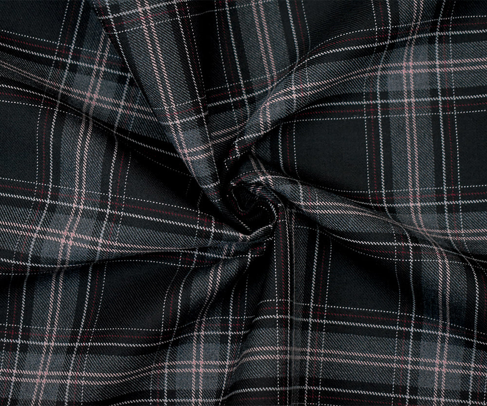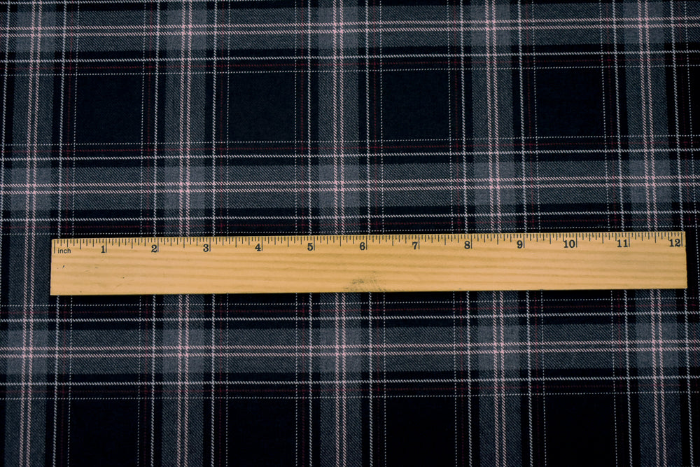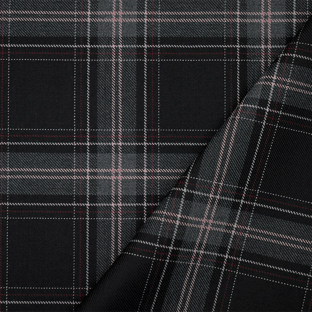 Black-Pink-Multi Poly-Wool Plaid Twill Woven Suiting Fabric