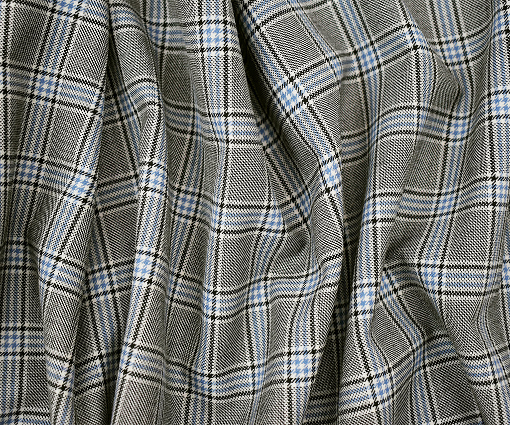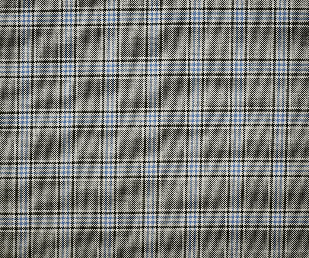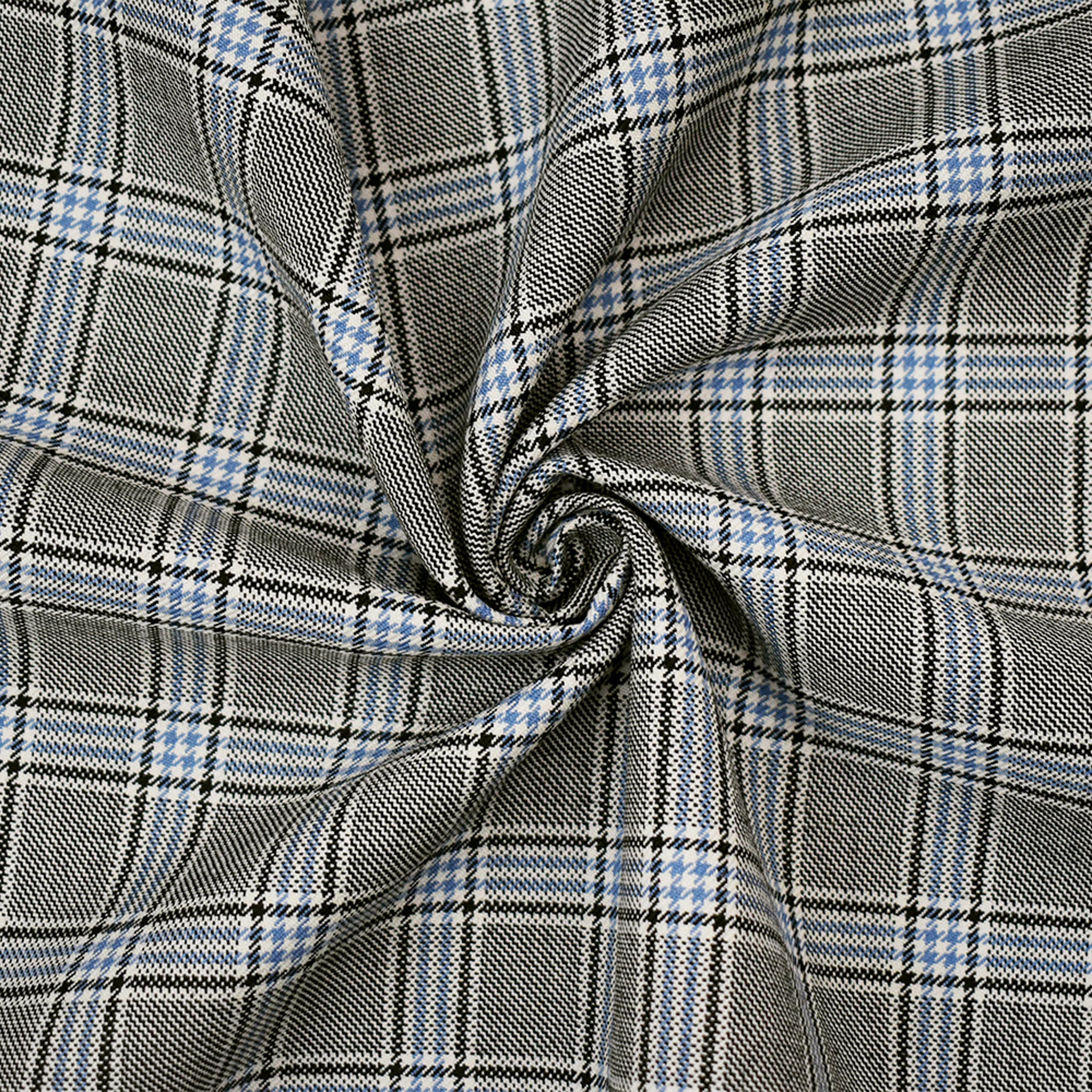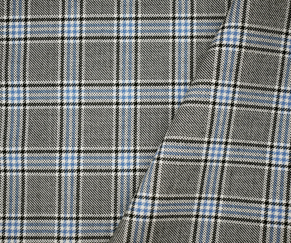 Black-White-Blue Poly Wool Plaid Twill Woven Suiting Fabric
