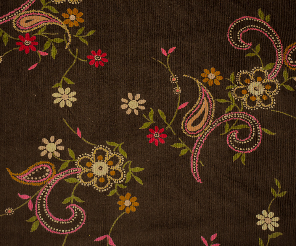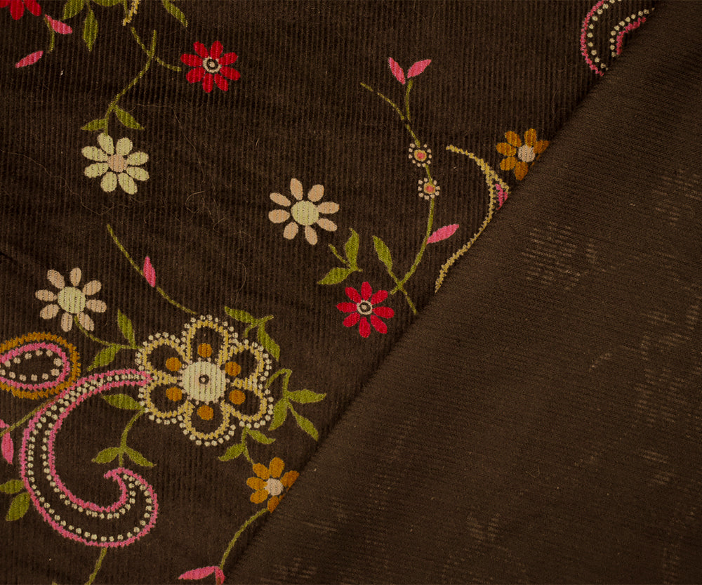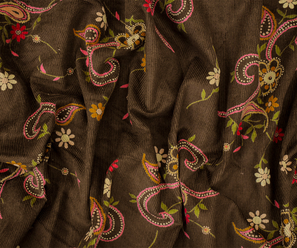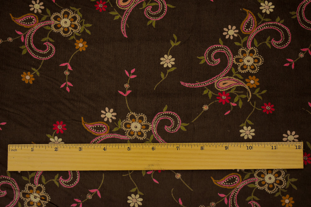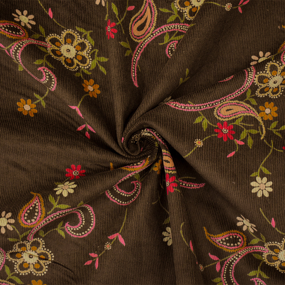 Brown-Pink-Multi Cotton Paisley Floral Printed Corduroy Woven Fabric