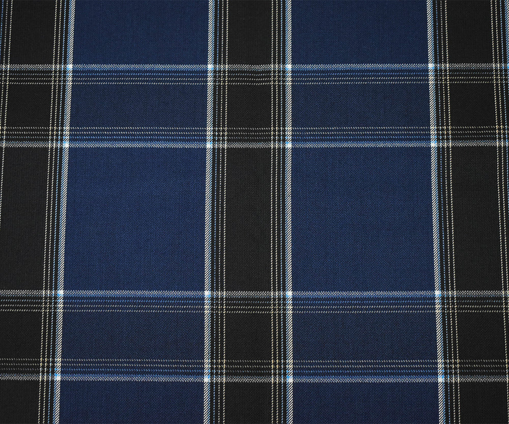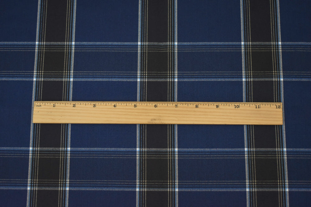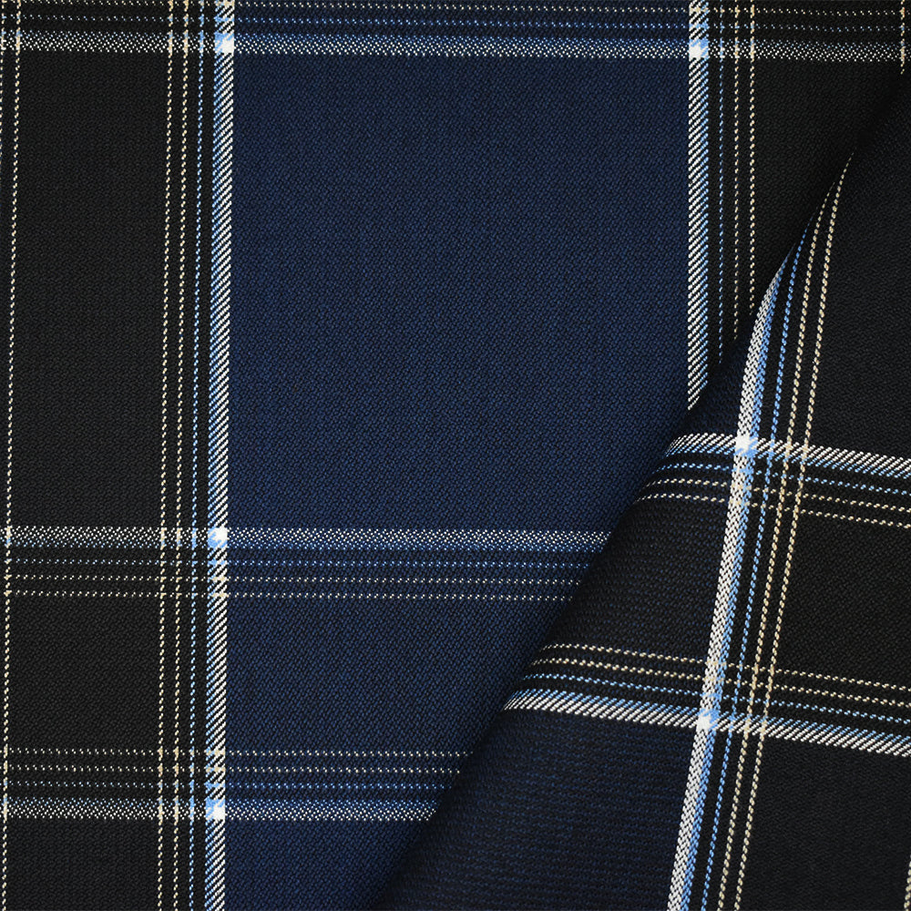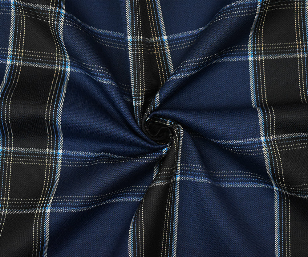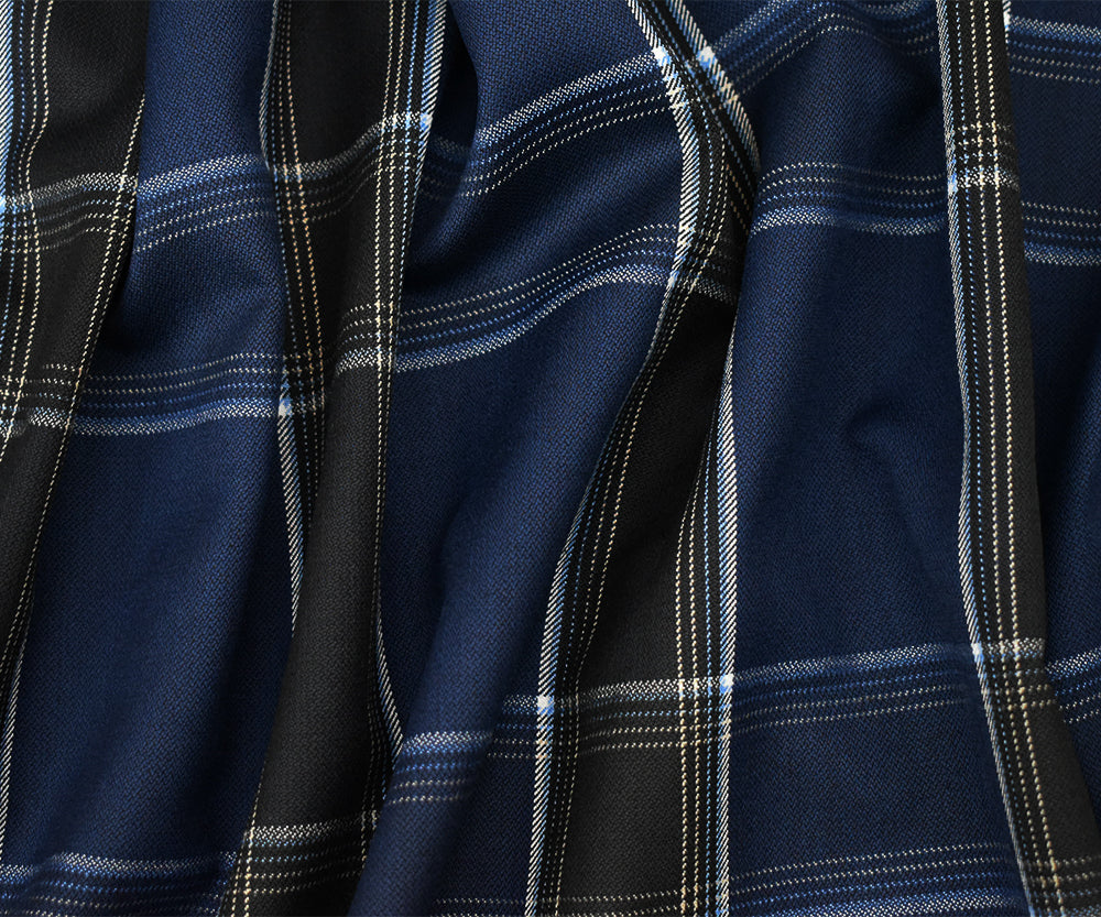 Deep Blue-White-Multi Poly-Wool Plaid Twill Suiting Fabric