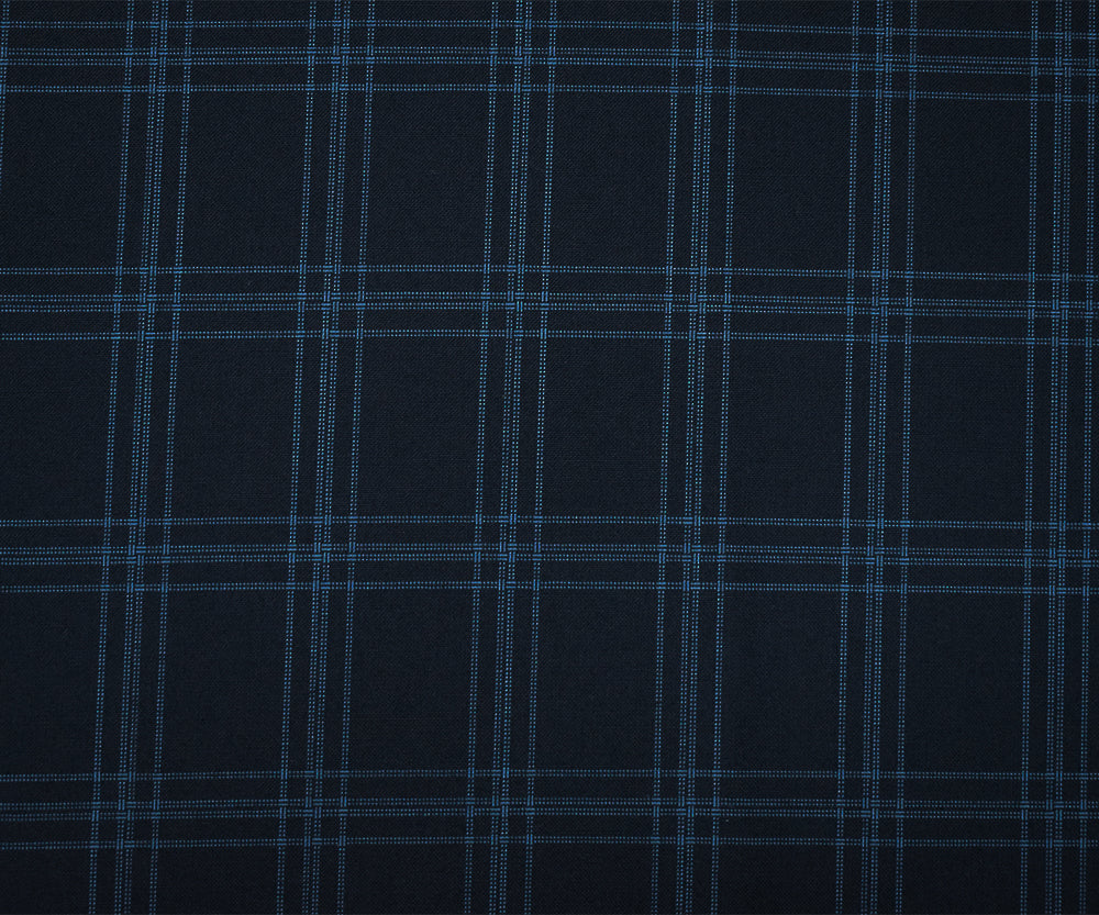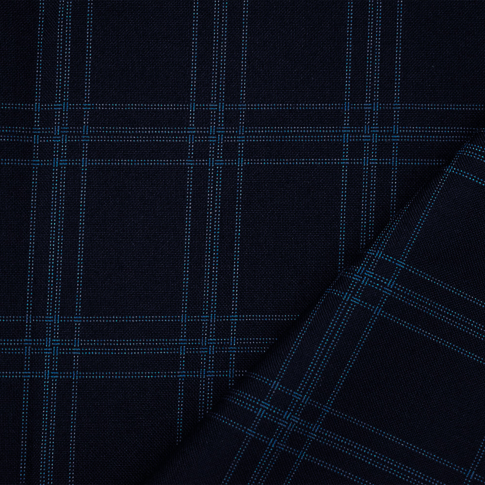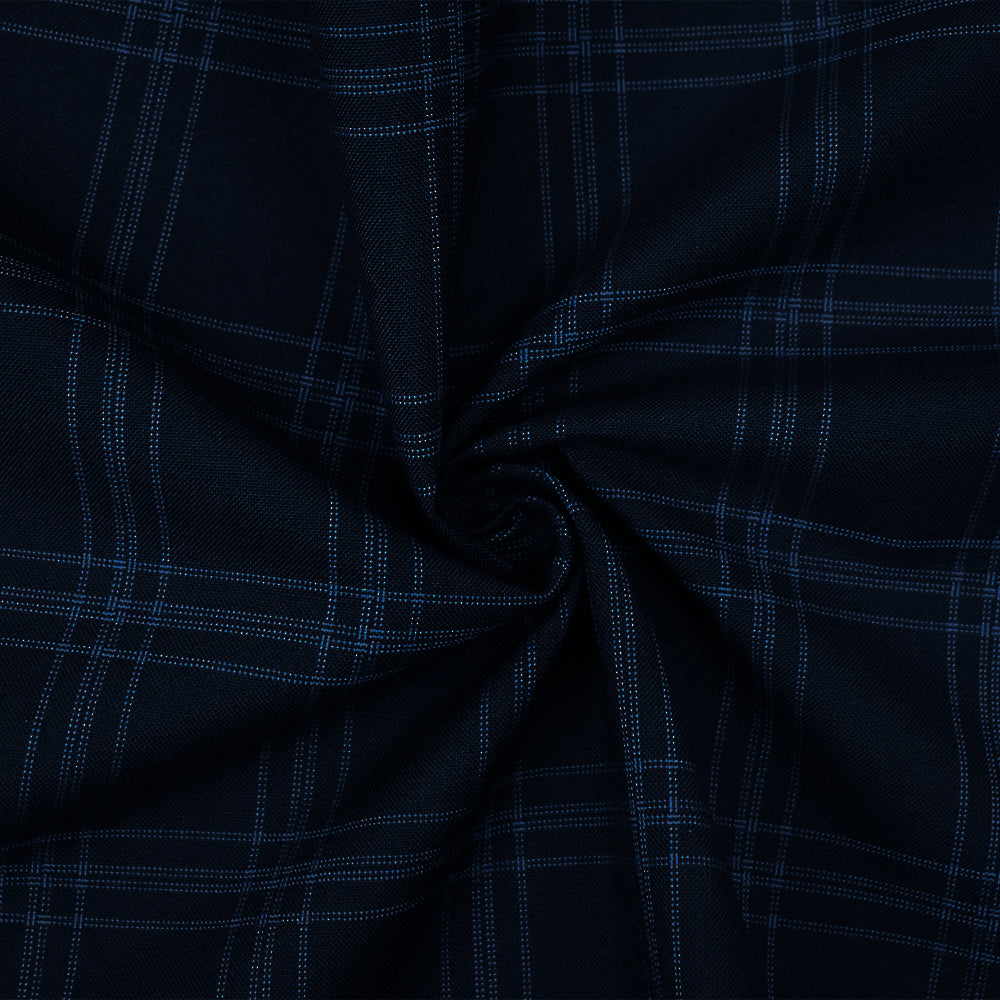 Deep Navy-Blue Poly-Wool Plaid Woven Shirting Fabric
