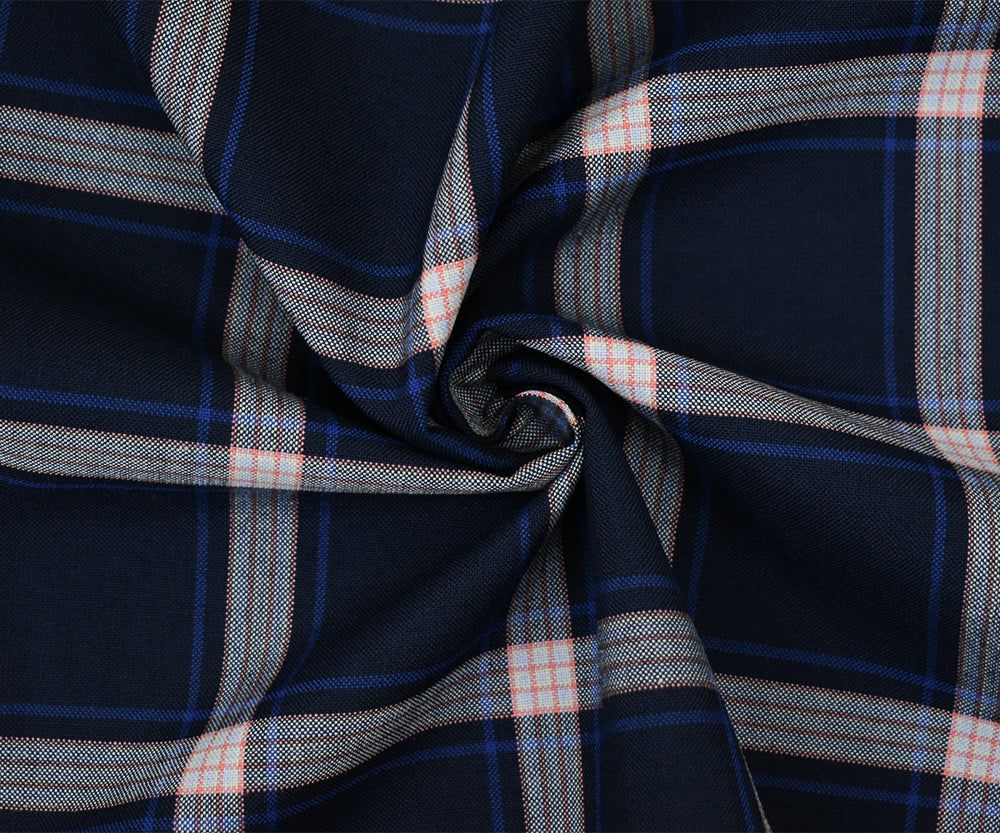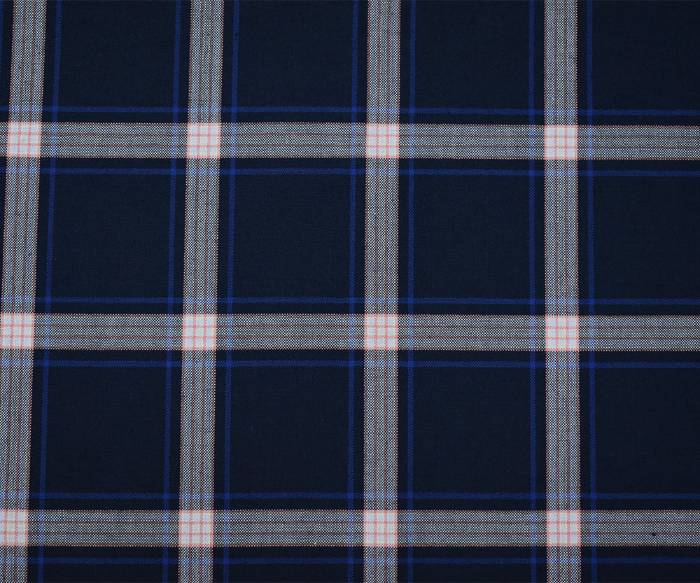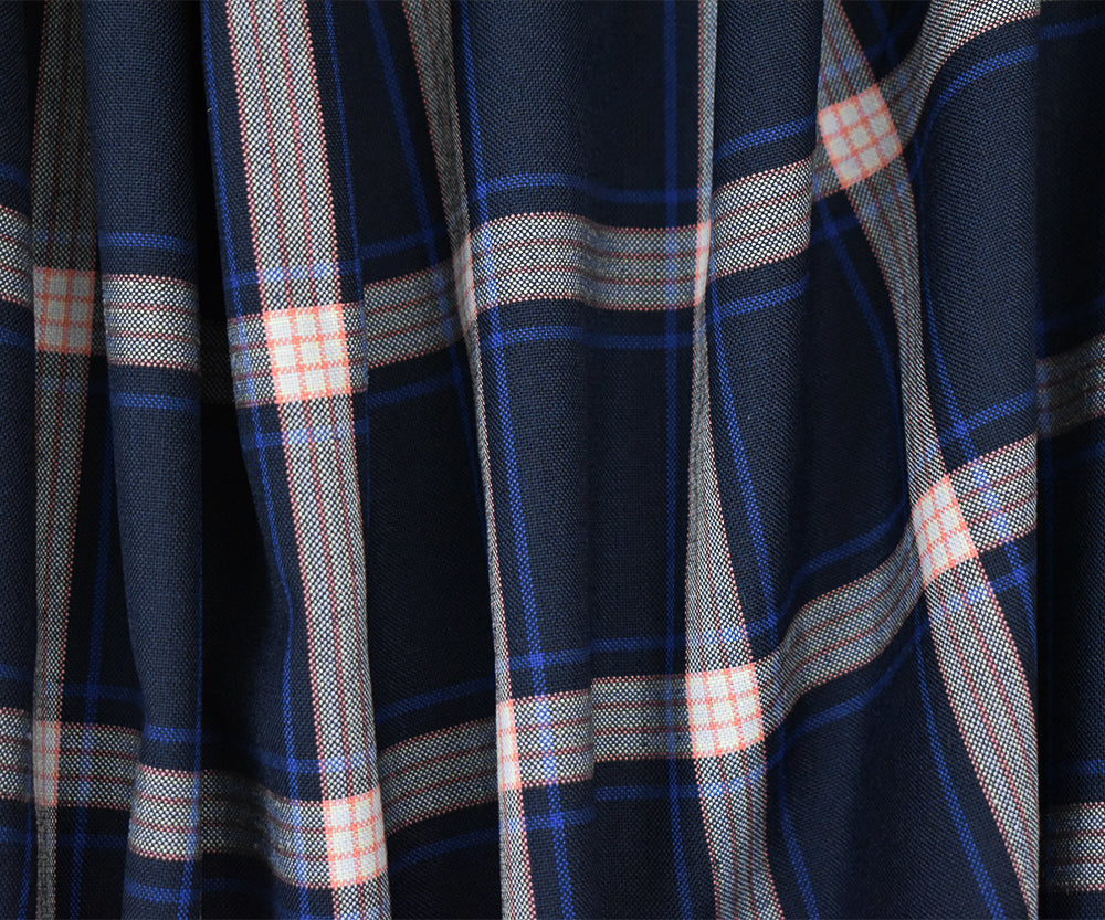 Deep Navy-Orange-Multi Polyester Wool Plaid Shirting Woven Fabric