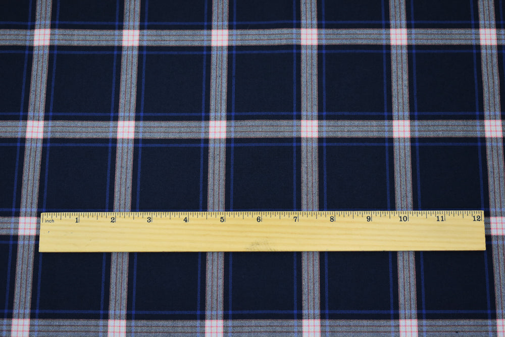 -Polyester and wool blend plaid/check shirting woven fabric. Made in Japan.
