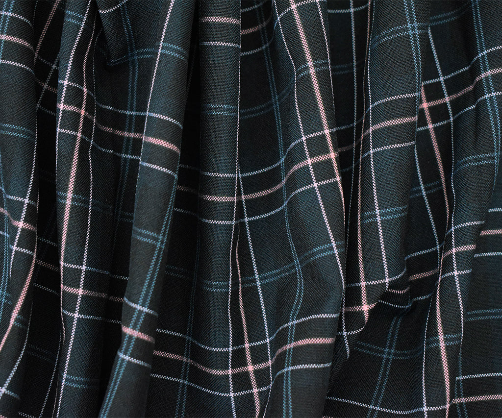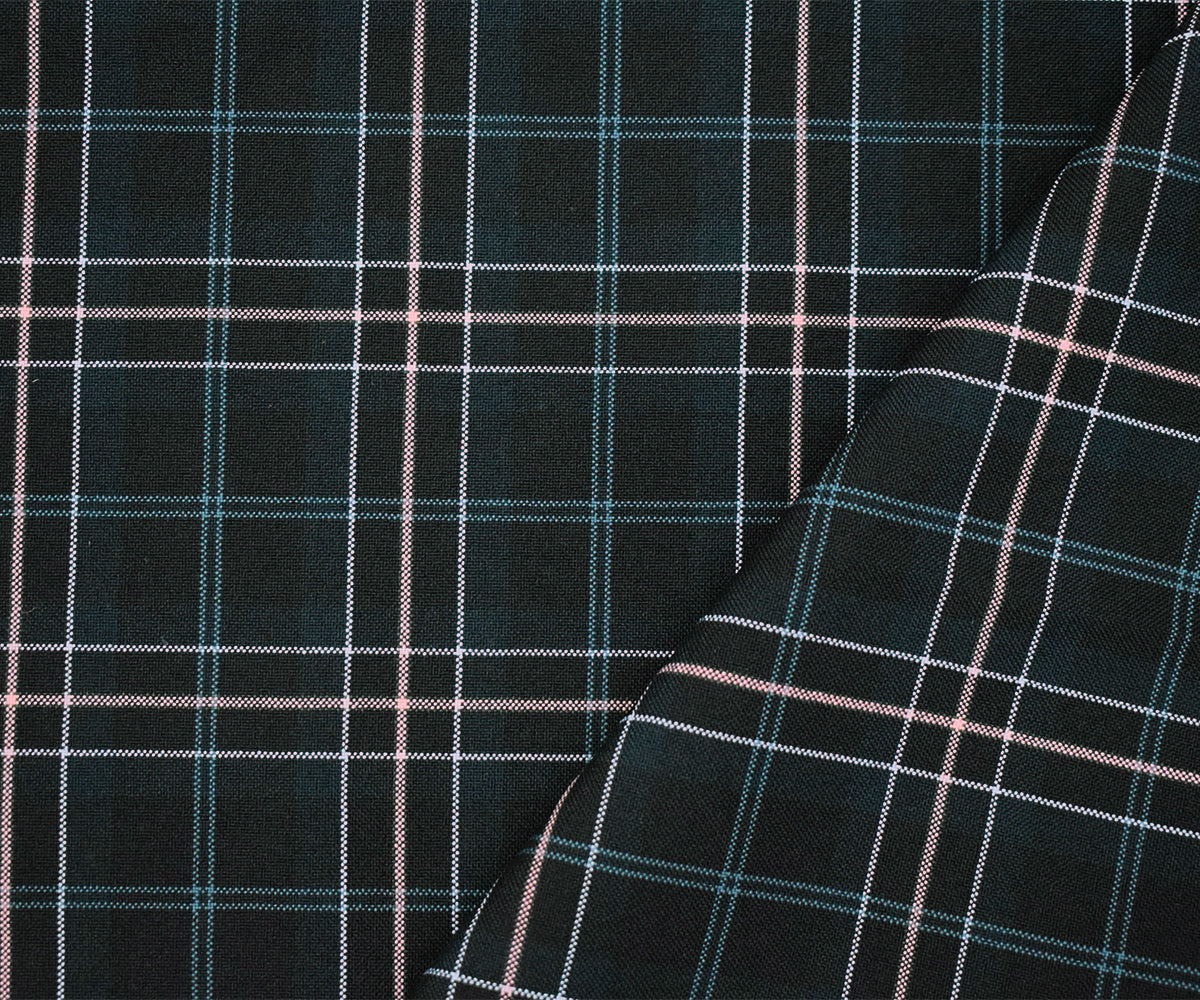 Deep Navy-Pink Poly Plaid Shirting Woven Fabric