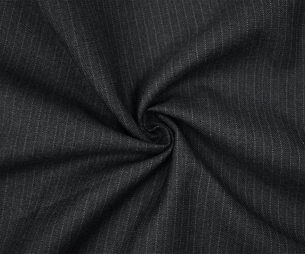 Gray-Black-Brown Poly Wool Texture Pinstripe Twill Suiting Woven Fabric