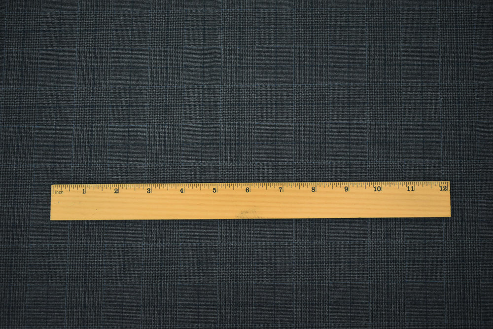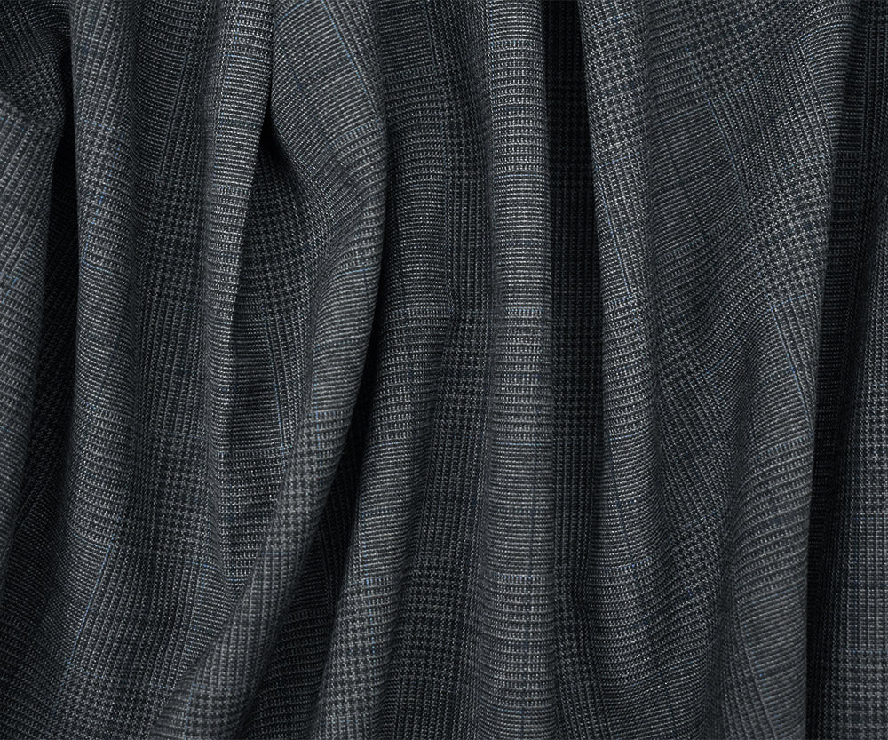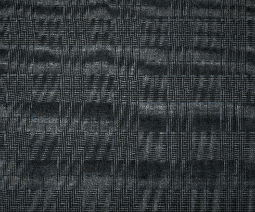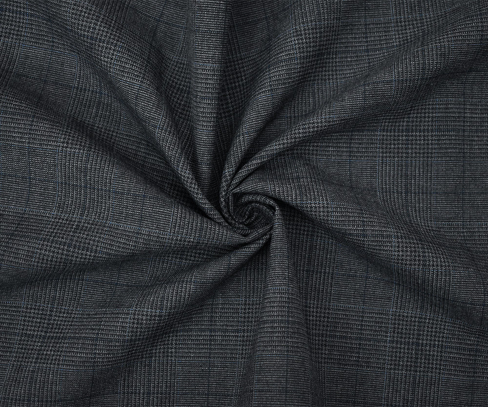 Gray-Blue-Black Polyester Wool Glen Plaid Check Shirting Woven Fabric