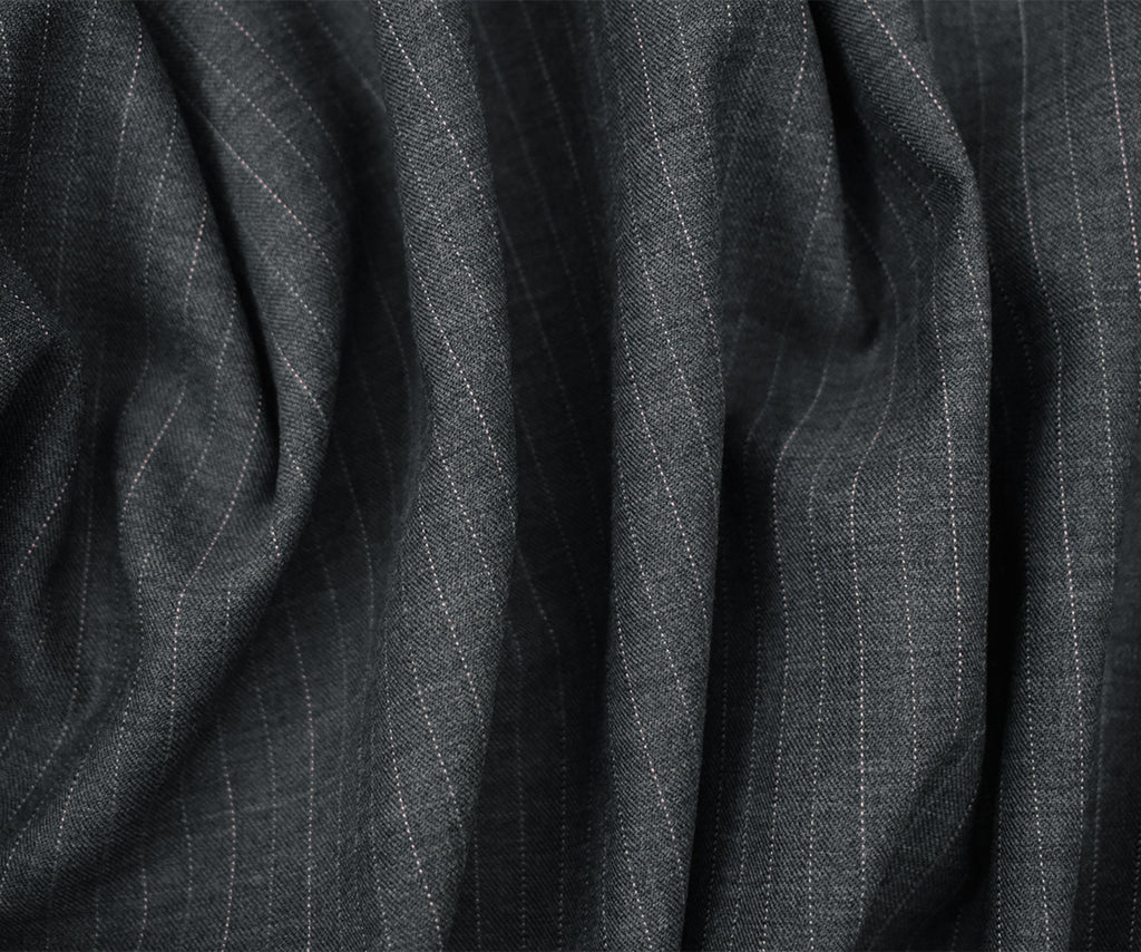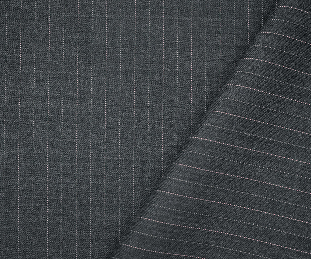 Gray-Pink Poly-Wool Pinstripe Woven Twill Suiting Fabric
