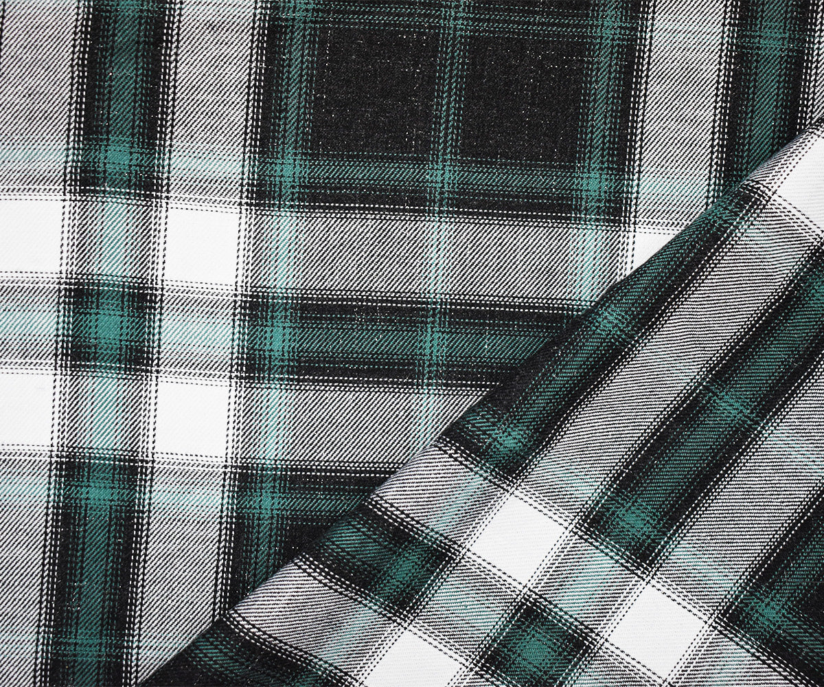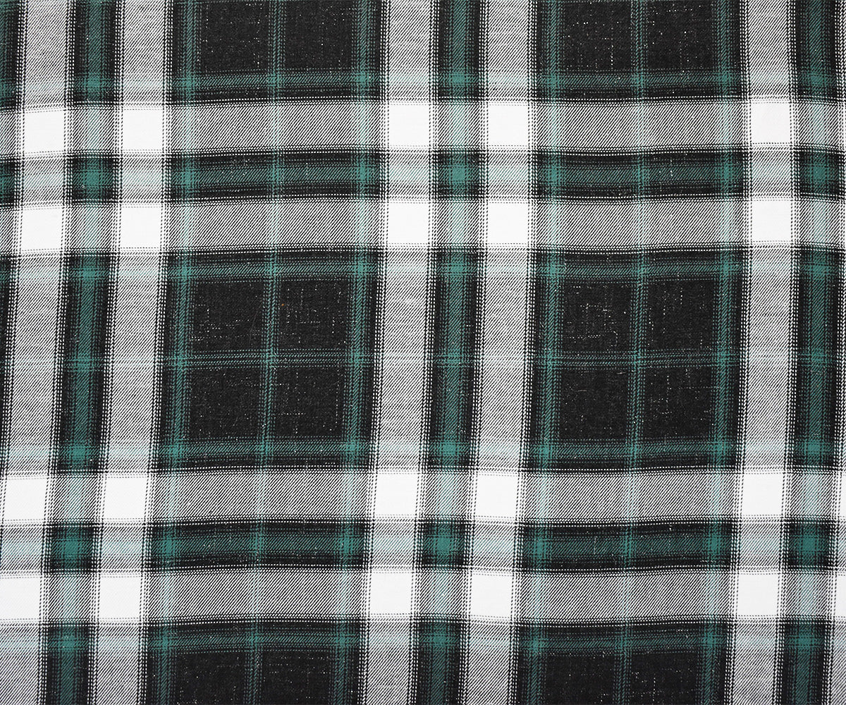 Green-Black-Silver Sparkle Famous Maker Cotton Plaid Twill Woven Fabric
