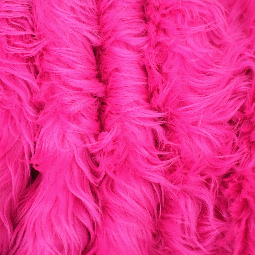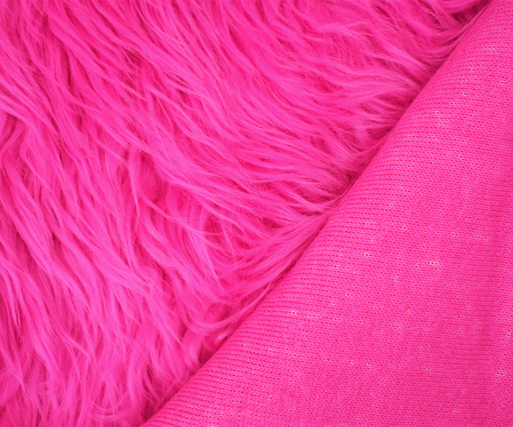 Hot Pink Acrylic Polyester High Pile Shaggy Faux Fur Knit Fabric