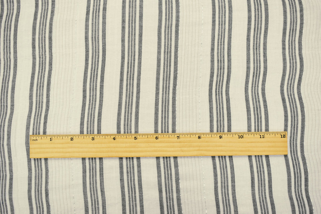 Ivory-Silver Metallic Famous Maker Cotton Striped Herringbone Woven Fabric
