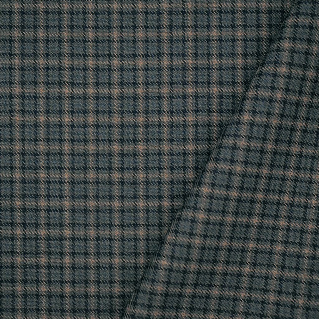 Navy-Beige-Multi Polyester Wool Plaid Check Twill Woven Suiting Fabric