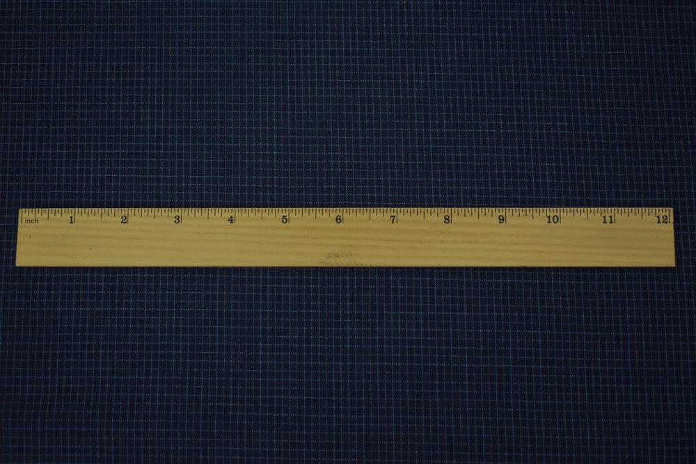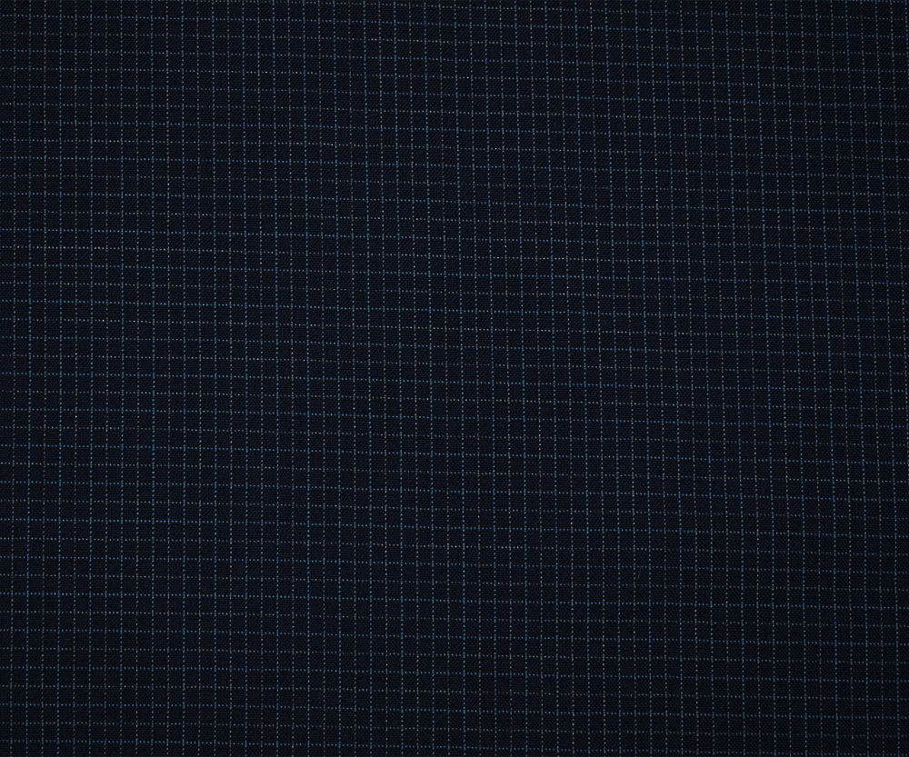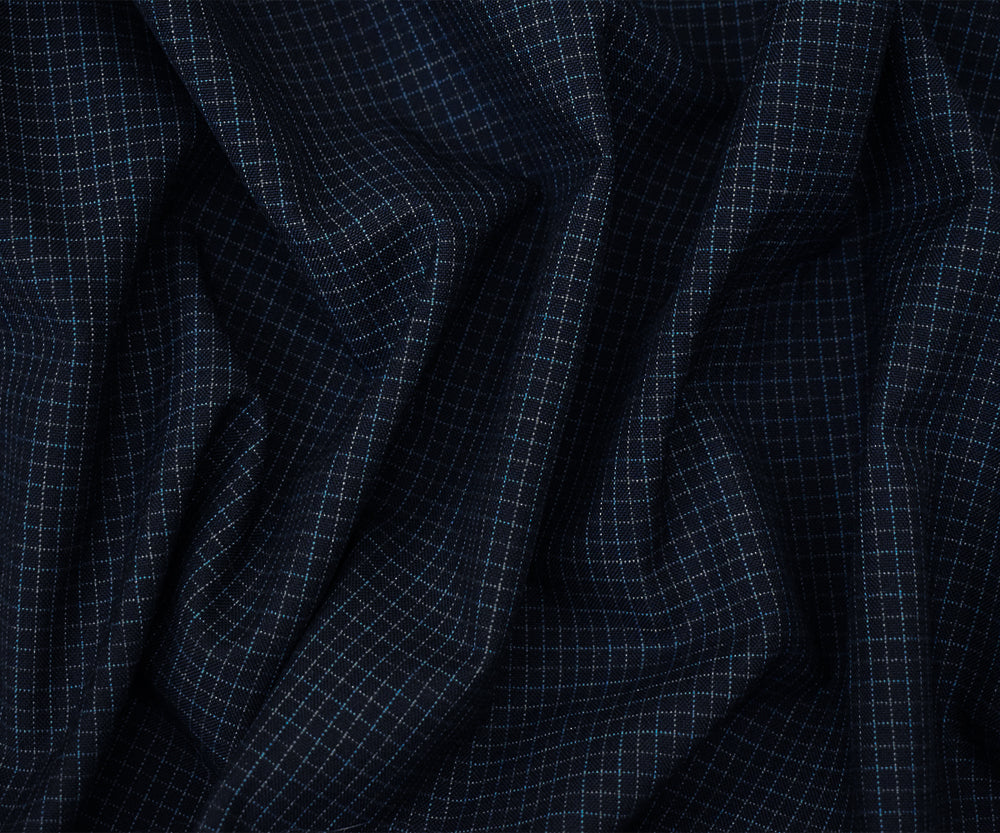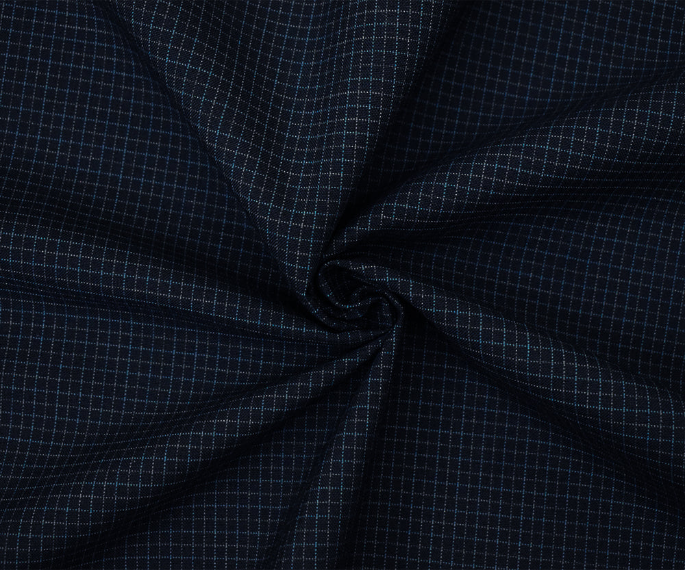 Navy-Blue-Gray Wool Poly Grid Check Woven Shirting Fabric