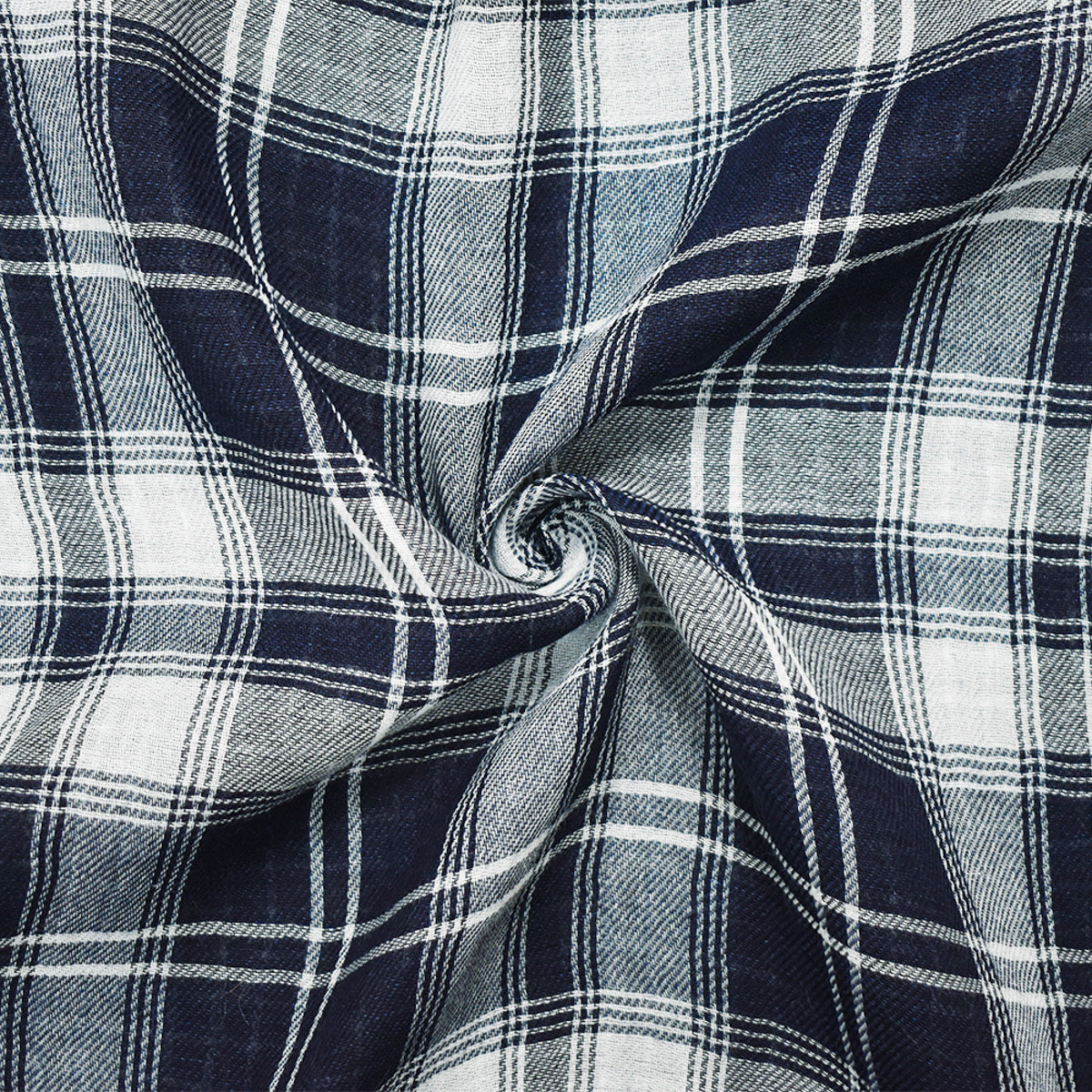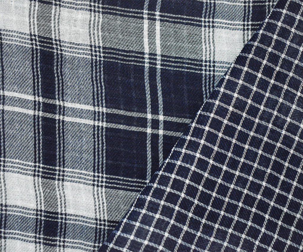 Navy-Cool White Famous Maker Cotton Plaid-Check Double Gauze Woven Fabric