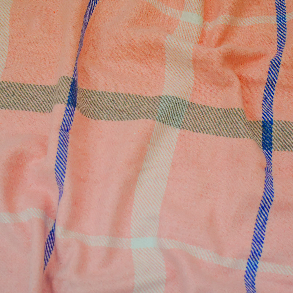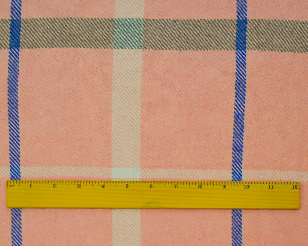 Pink-Multi Polyester-Wool Single Sided Brushed Plaid Twill Jacketing Fabric