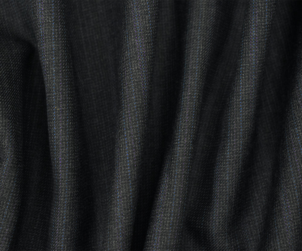 Black-Blue-Multi Wool Polyester Texture Stripe Twill Suiting Woven Fabric
