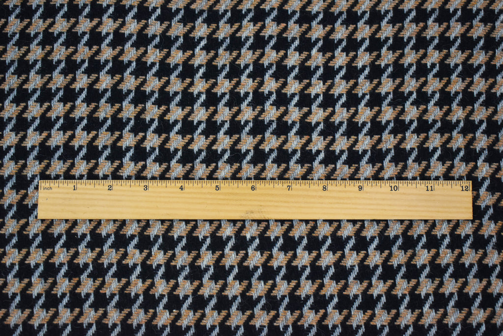 Black-Brown-Gray Wool-Poly Houndstooth Woven Jacketing Fabric