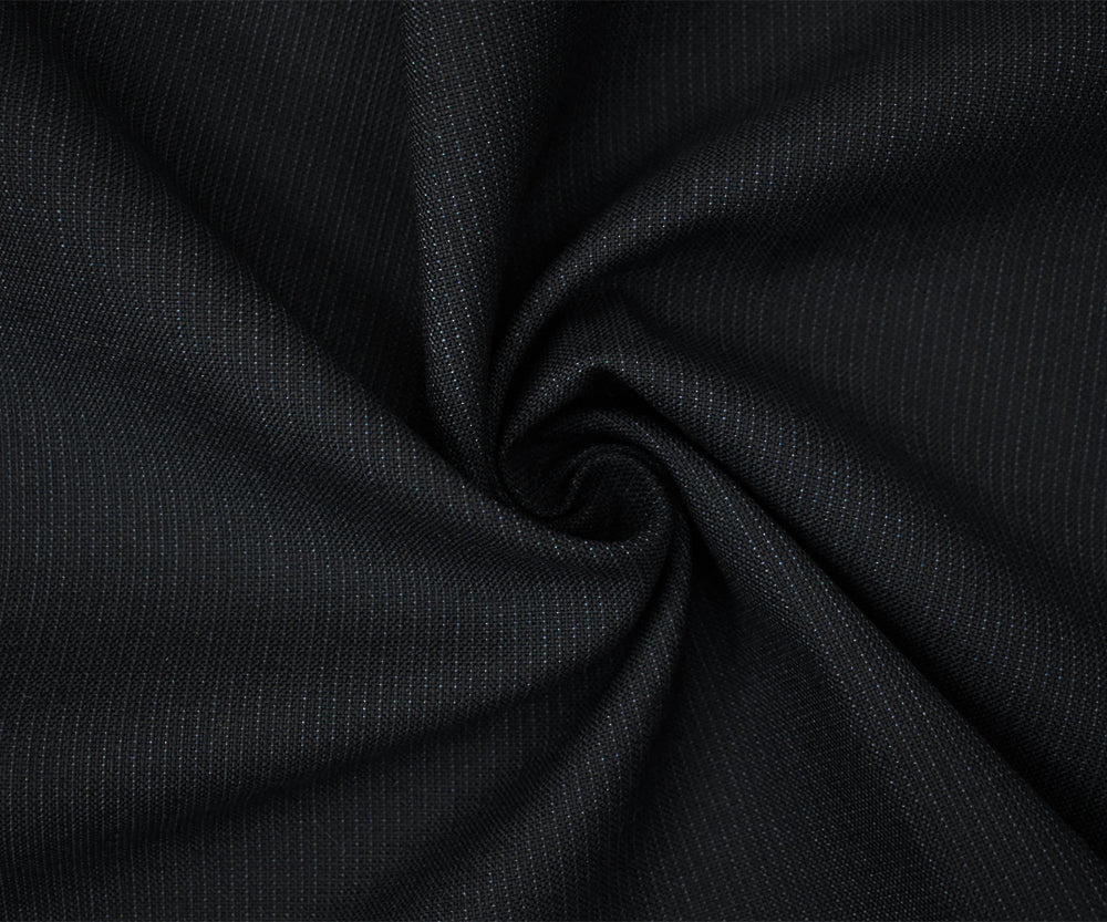 Black-Cool Gray Wool-Poly Stripe Woven Dobby Suiting Fabric