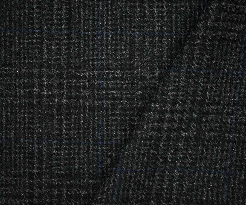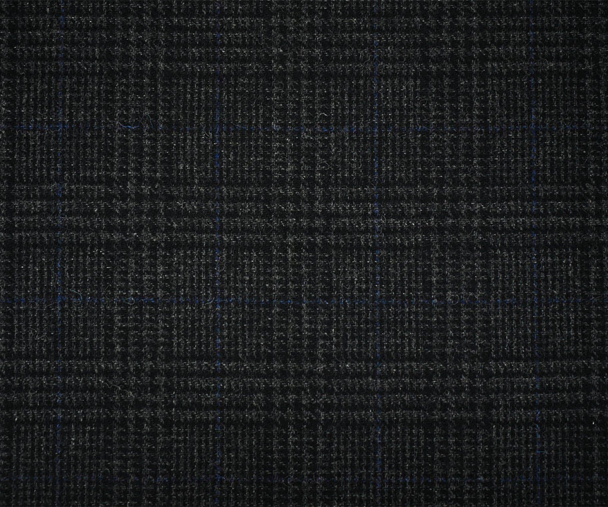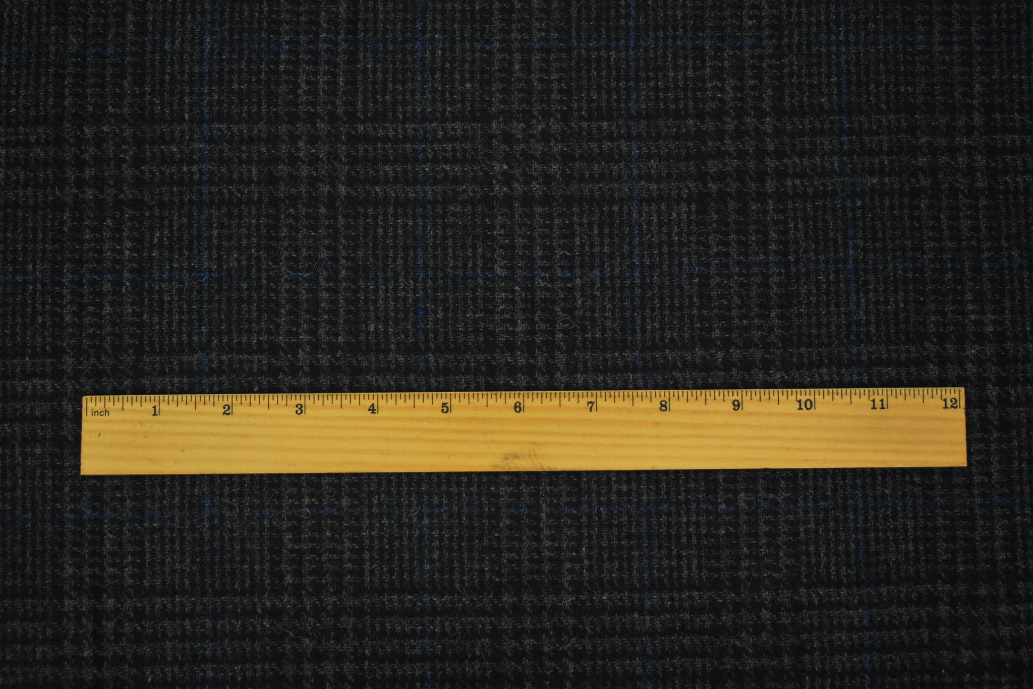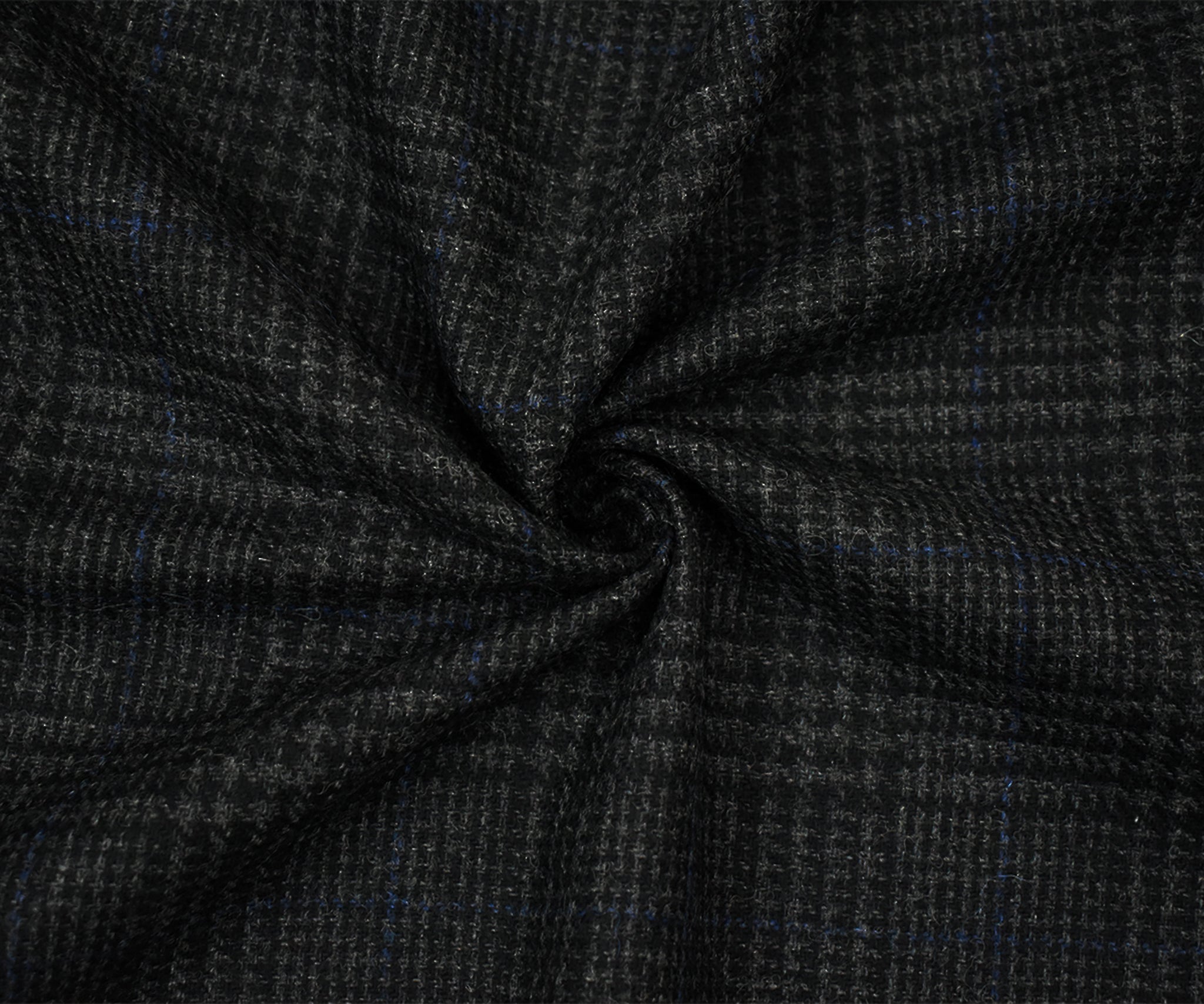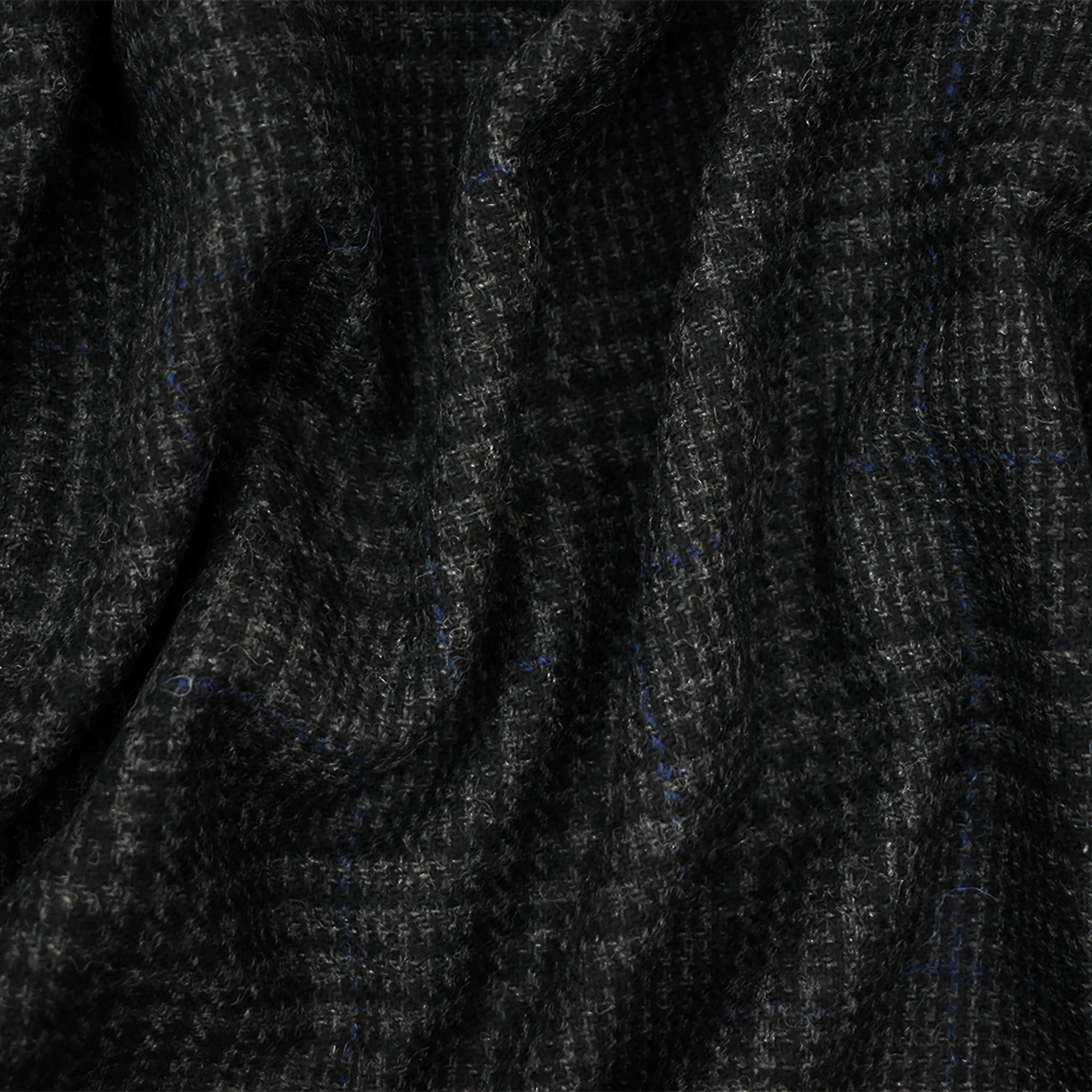 Black-Gray-Blue Wool Blend Glen Plaid Check Jacketing Woven Fabric
