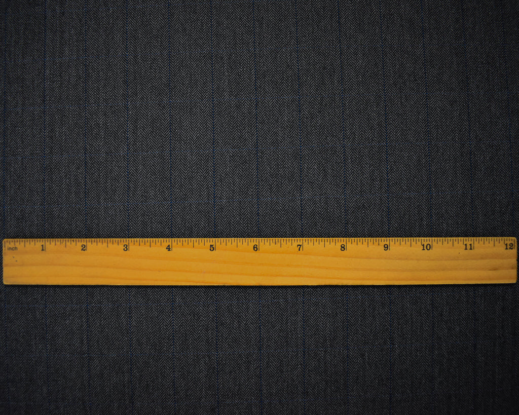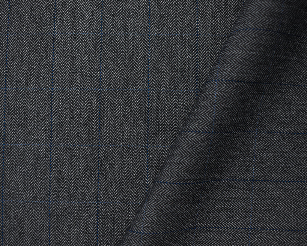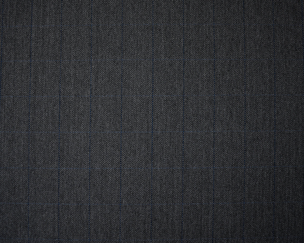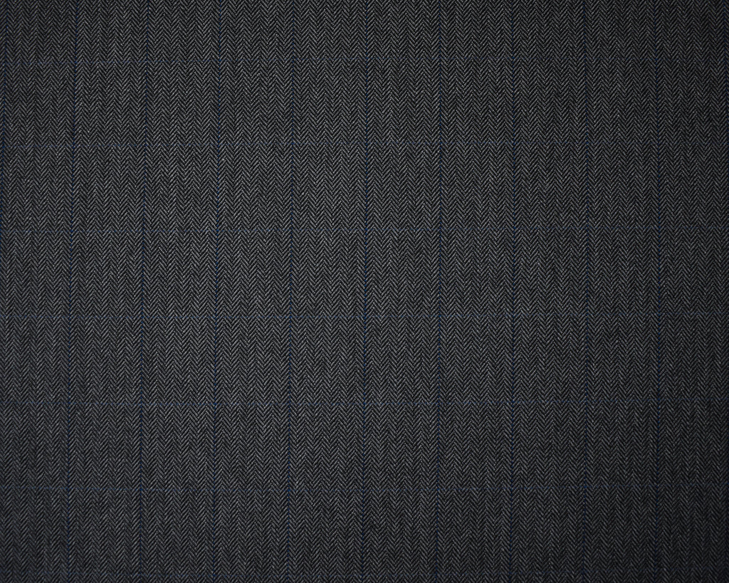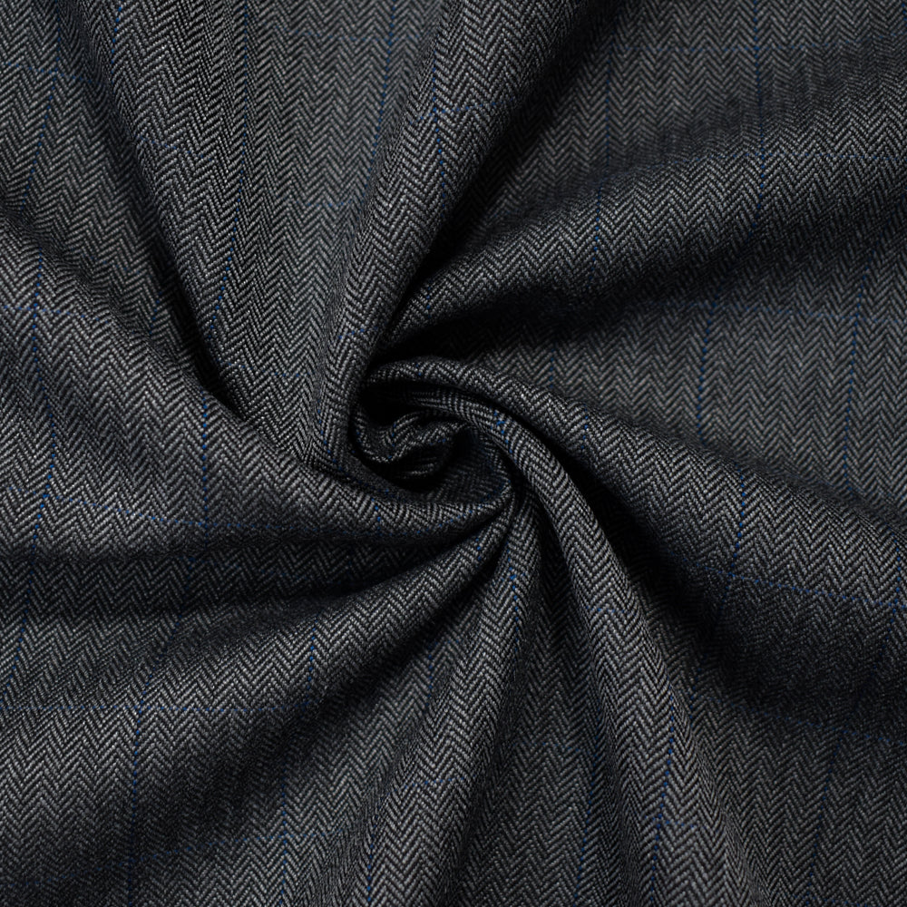 Black-Gray-Blue Wool Cotton Herringbone Check Twill Woven Suiting Fabric