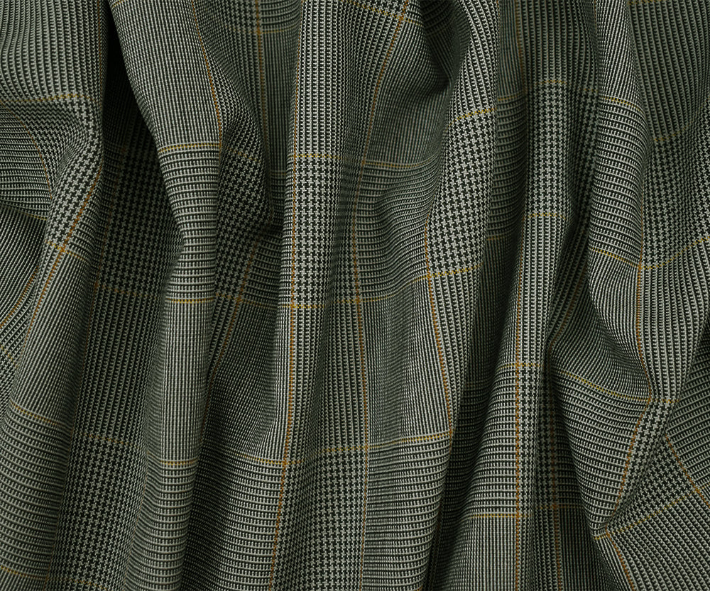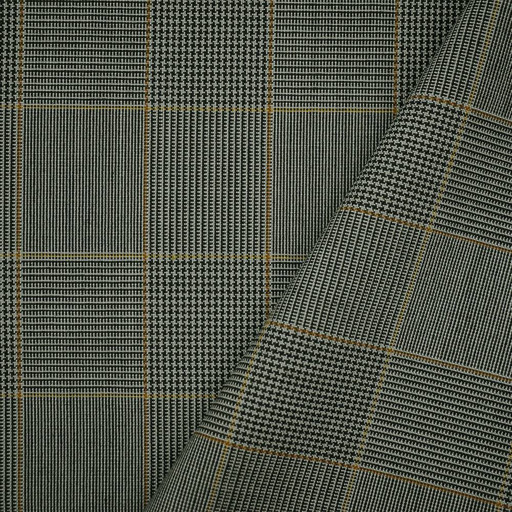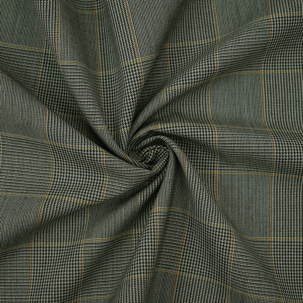 Black-Gray-Dijon Poly-Wool Check Glen Plaid Woven Suiting Fabric