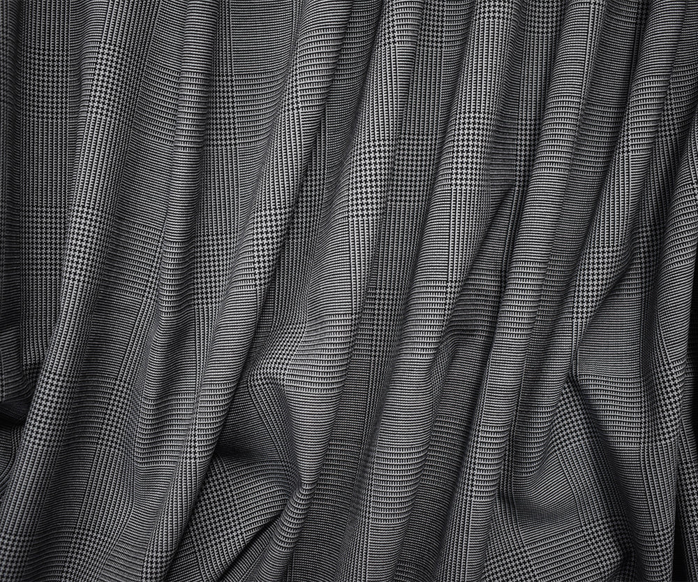 Black-Gray Wool-Poly Japanese Glen Plaid Woven Suiting Fabric