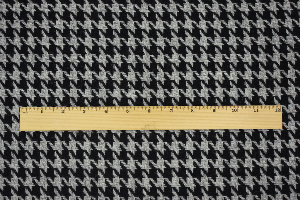 Black-Gray Wool-Polyester Houndstooth Woven Jacketing Fabric