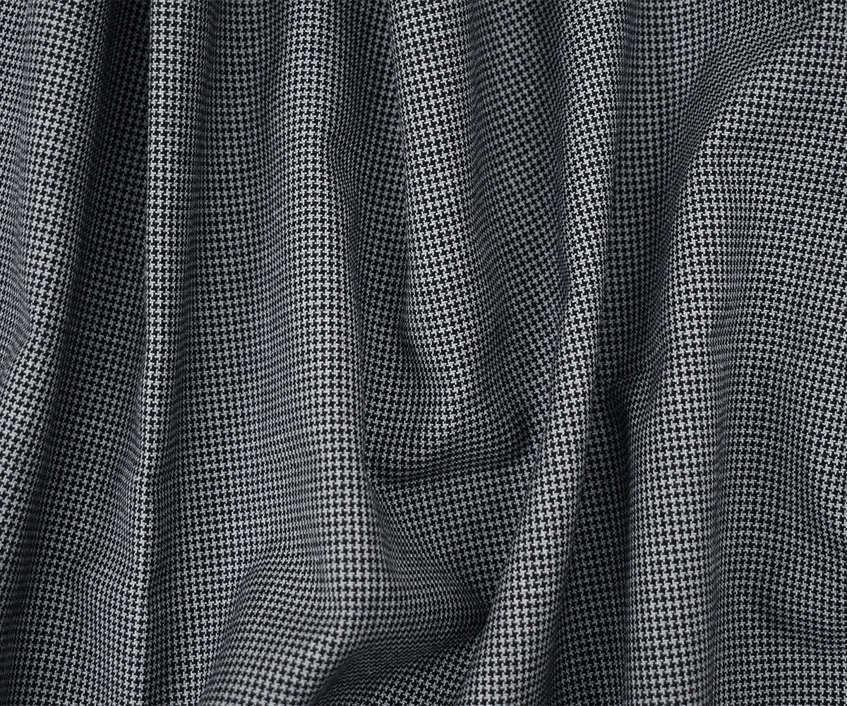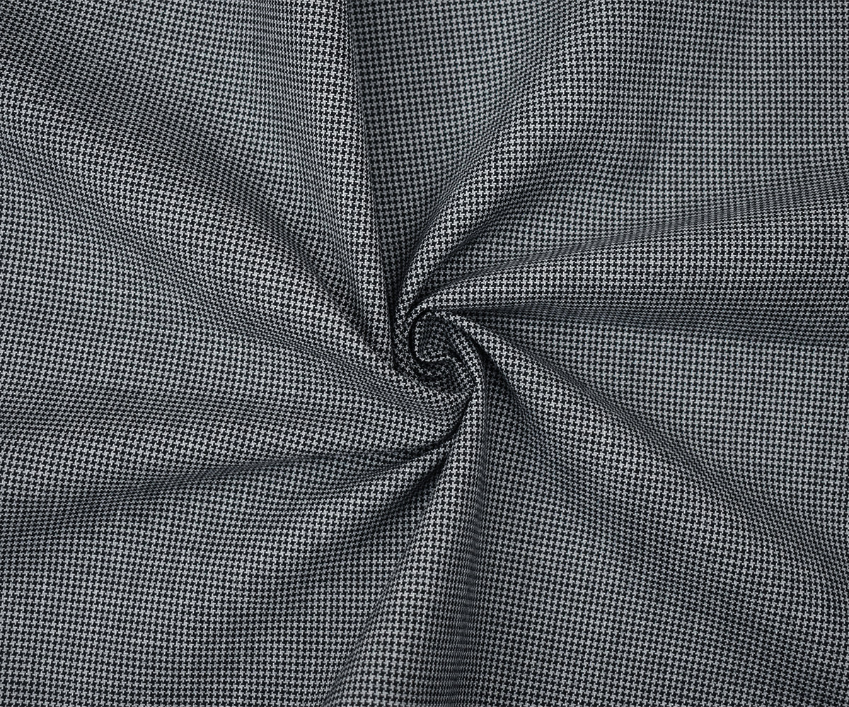 Black-Gray Wool Polyester Micro Houndstooth Woven Shirting Fabric