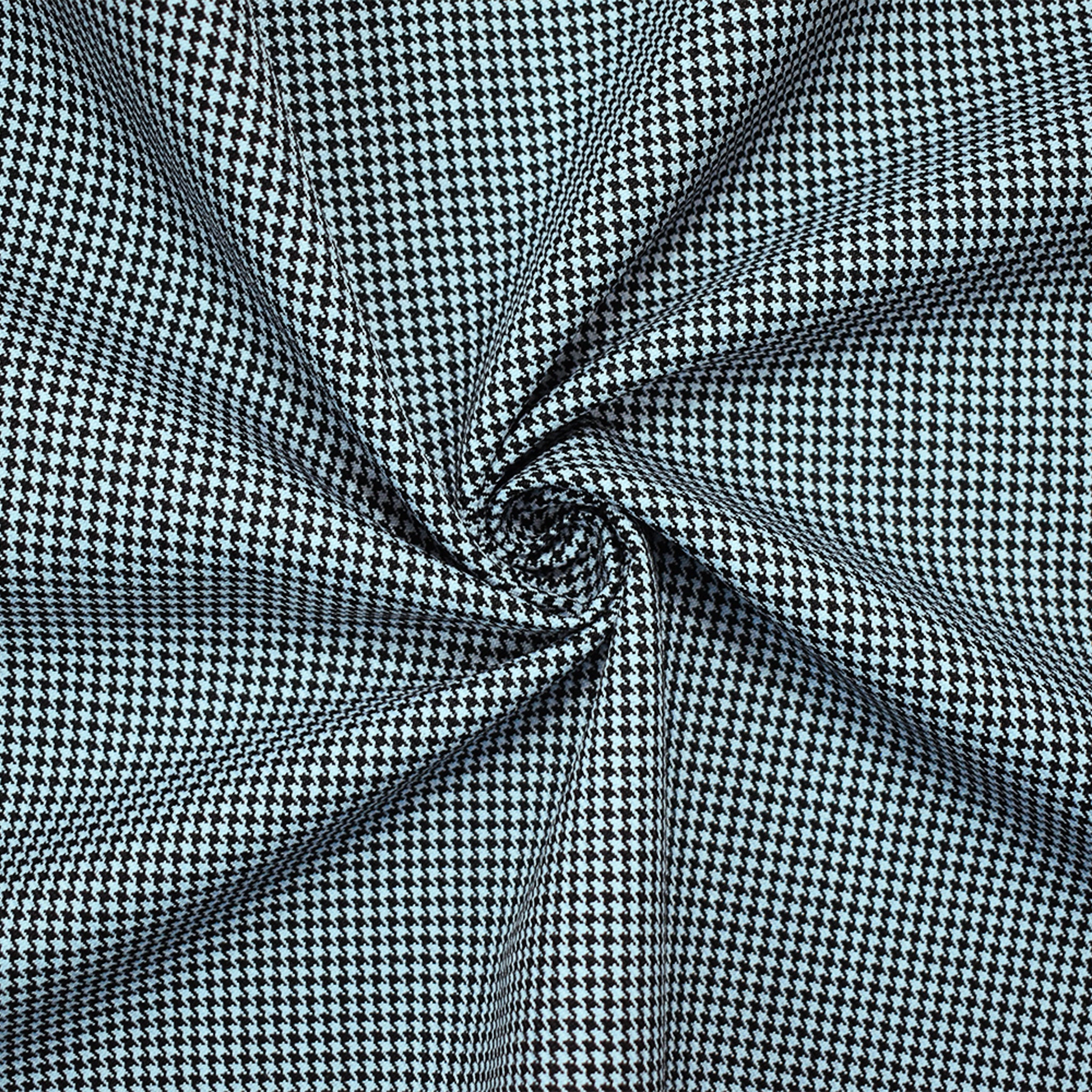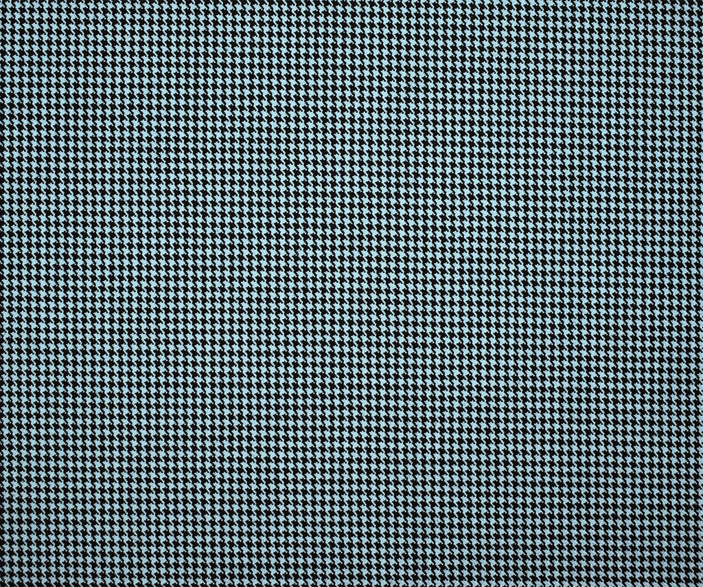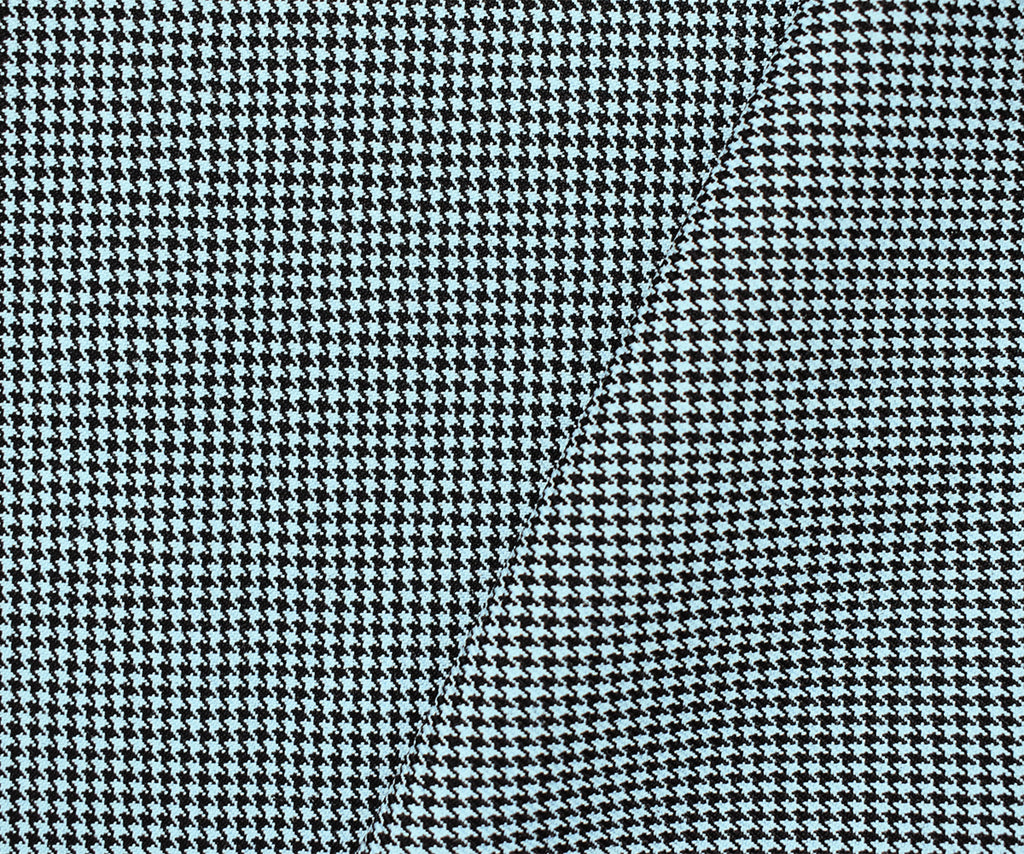 Black-Sky Blue Wool-Poly Houndstooth Woven Twill Suiting Fabric