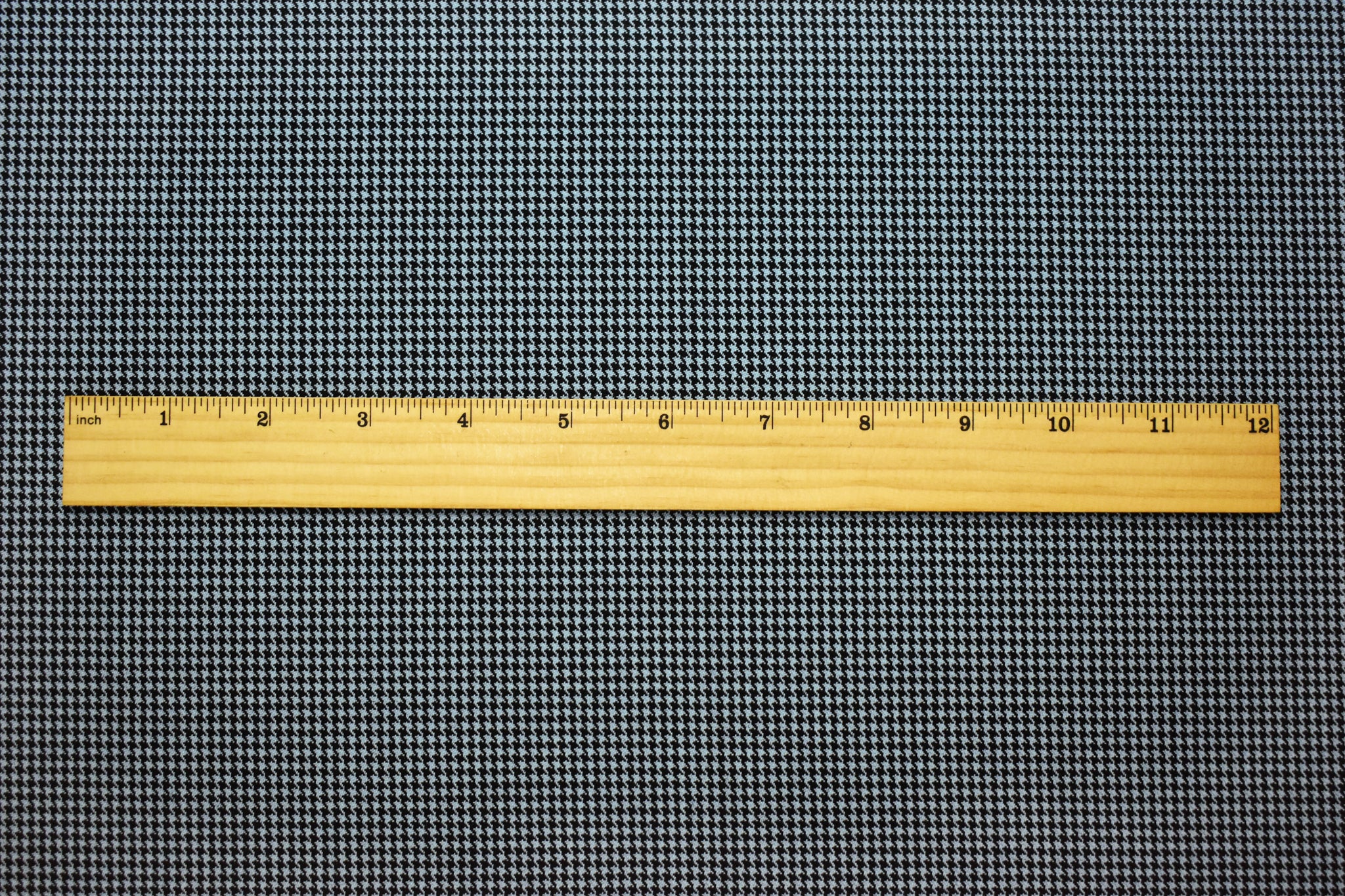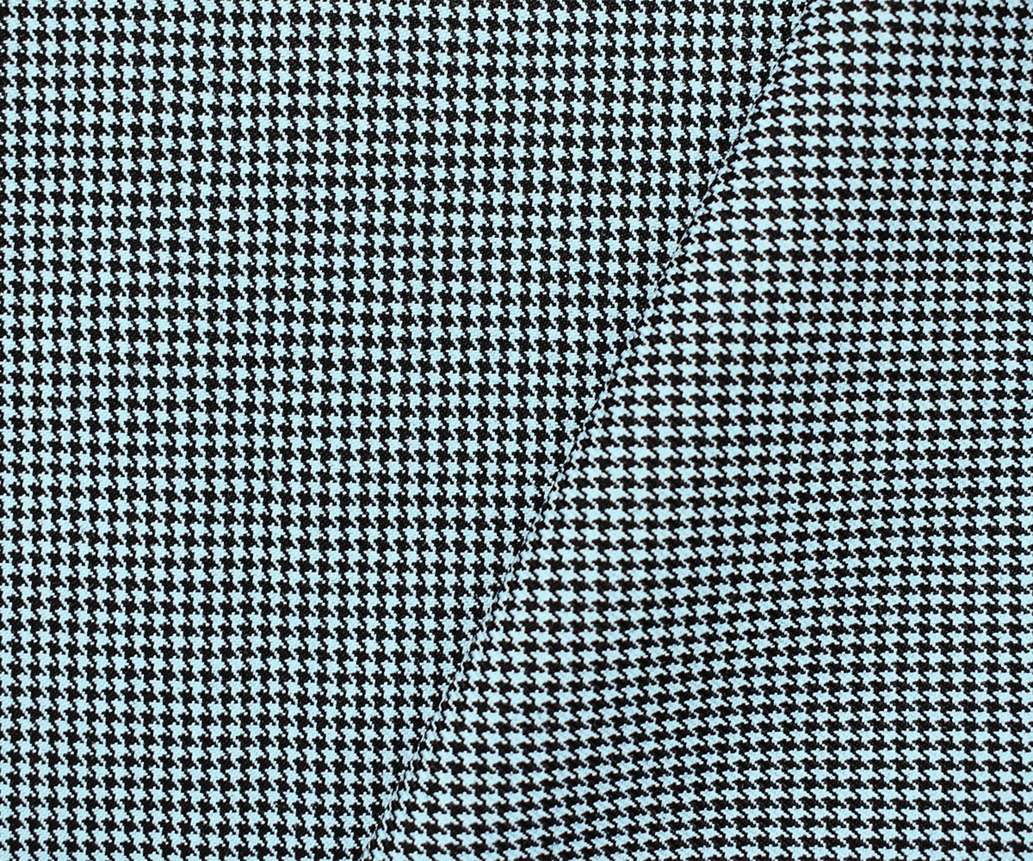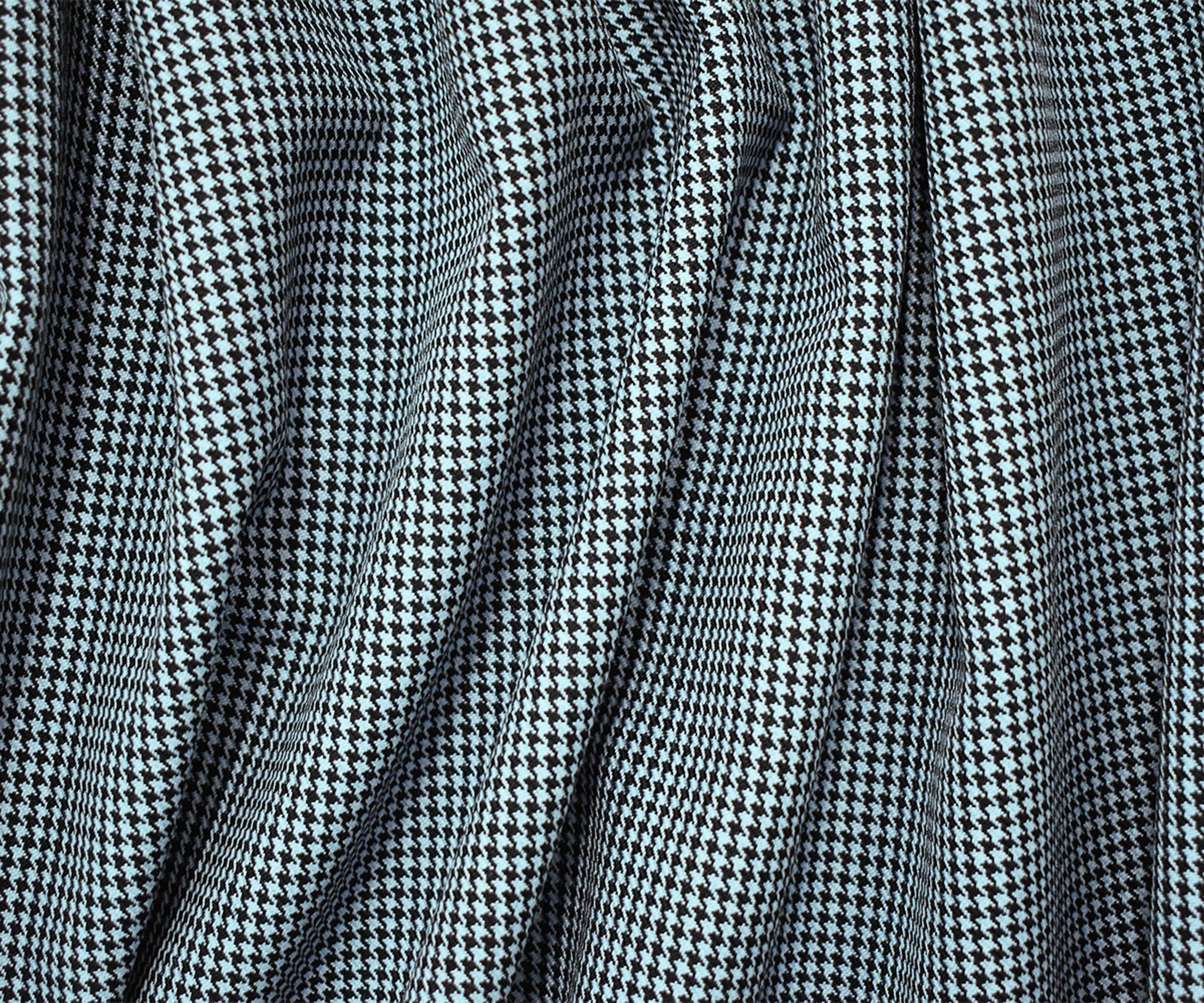 Black-Sky Blue Wool-Poly Houndstooth Woven Twill Suiting Fabric