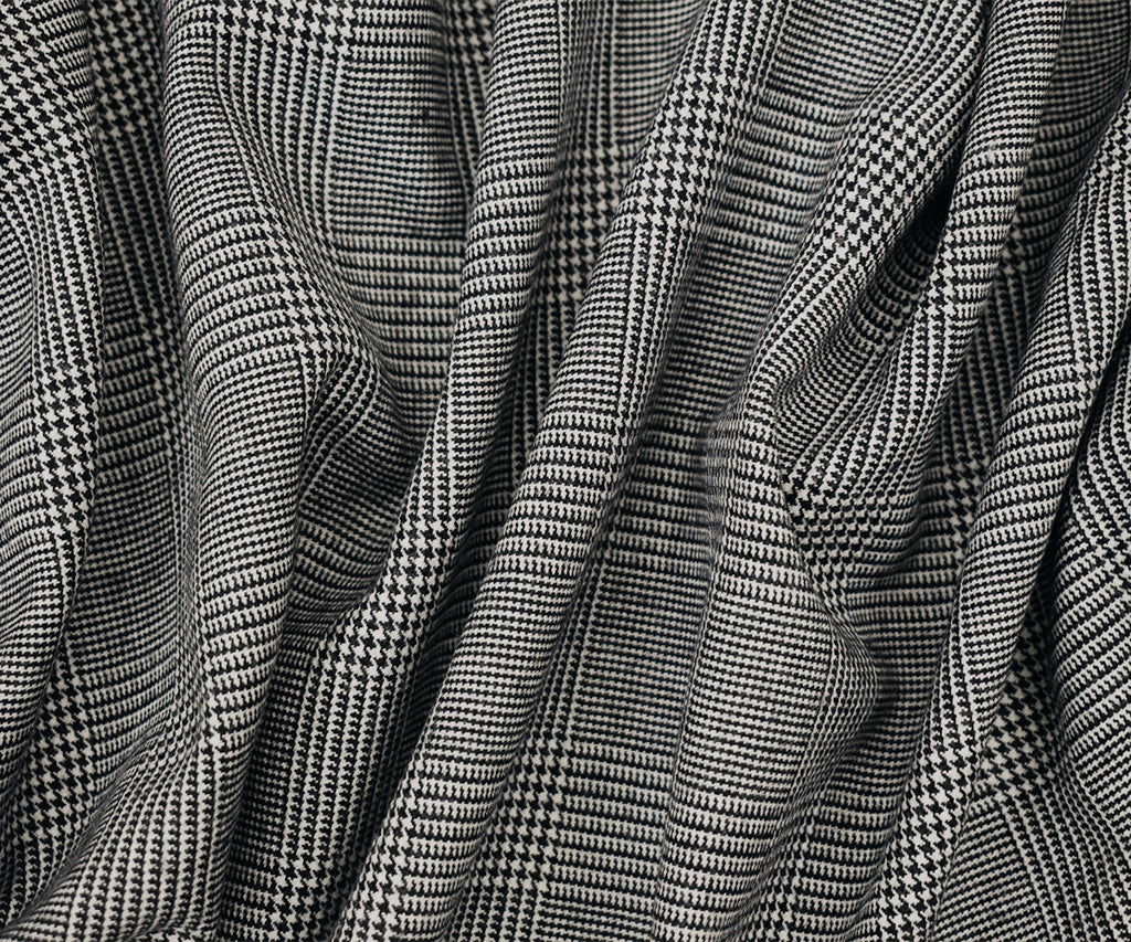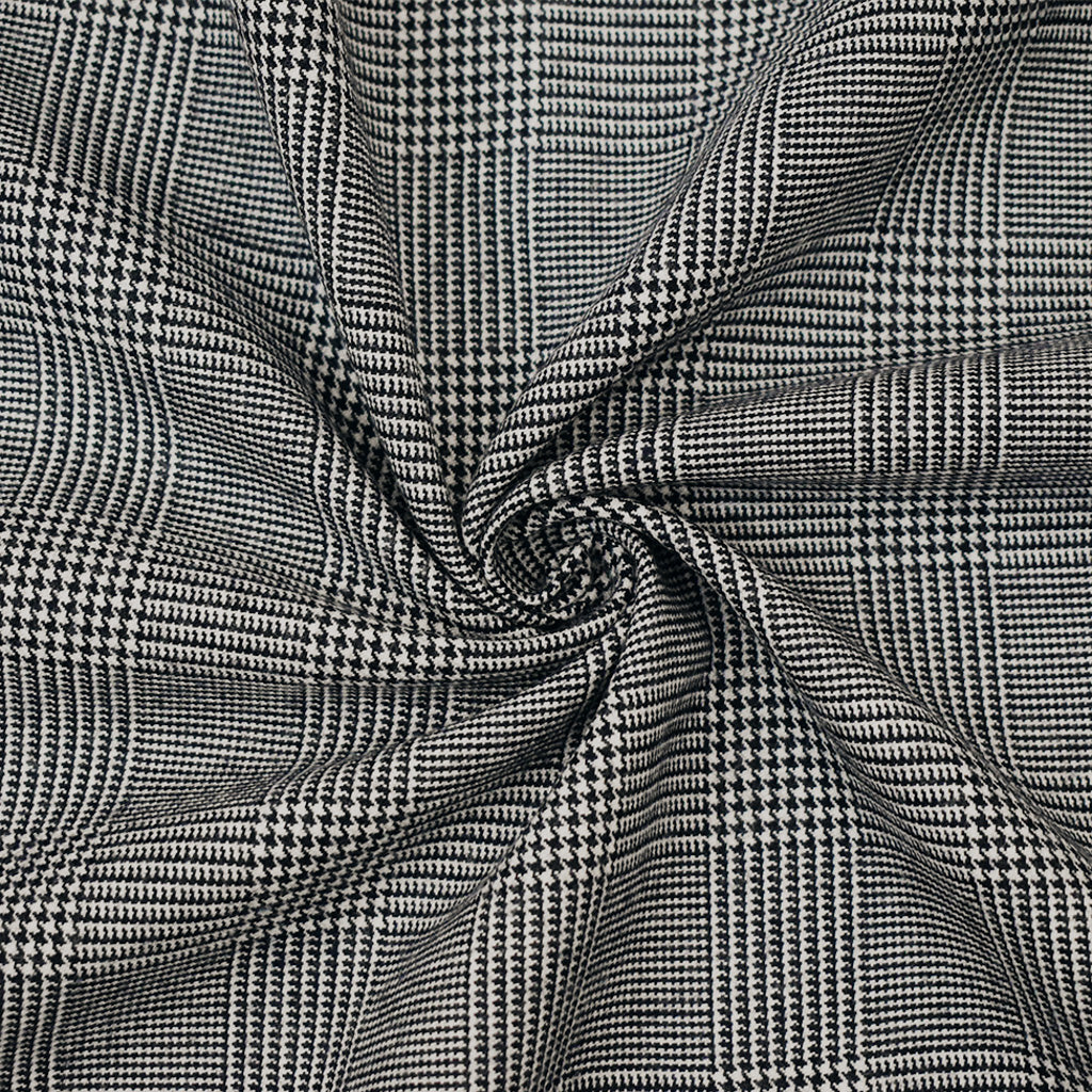 Black-White Wool-Polyester Glen Plaid Woven Suiting Fabric