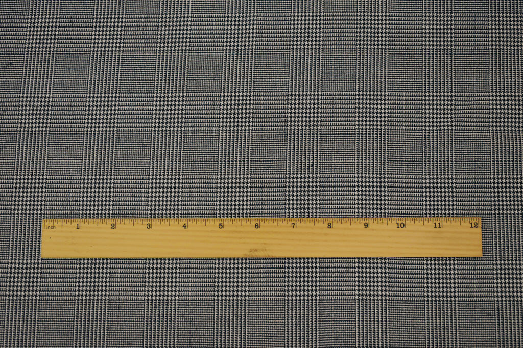 -Wool and polyester blend glen plaid/check pattern woven suiting fabric. Made in Japan.