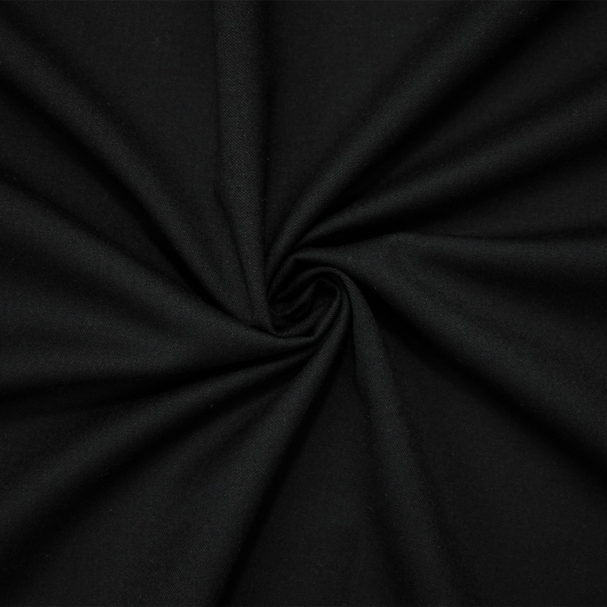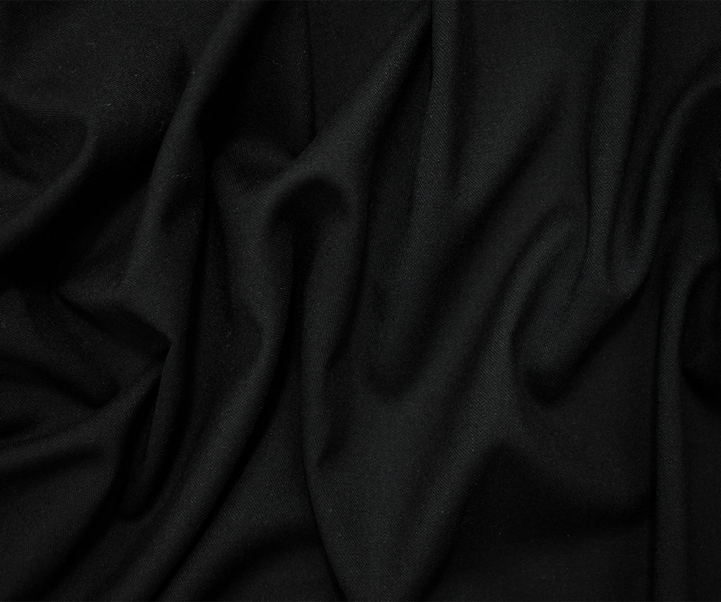 Black Wool-Polyester Black Solid Twill Woven Suiting Fabric