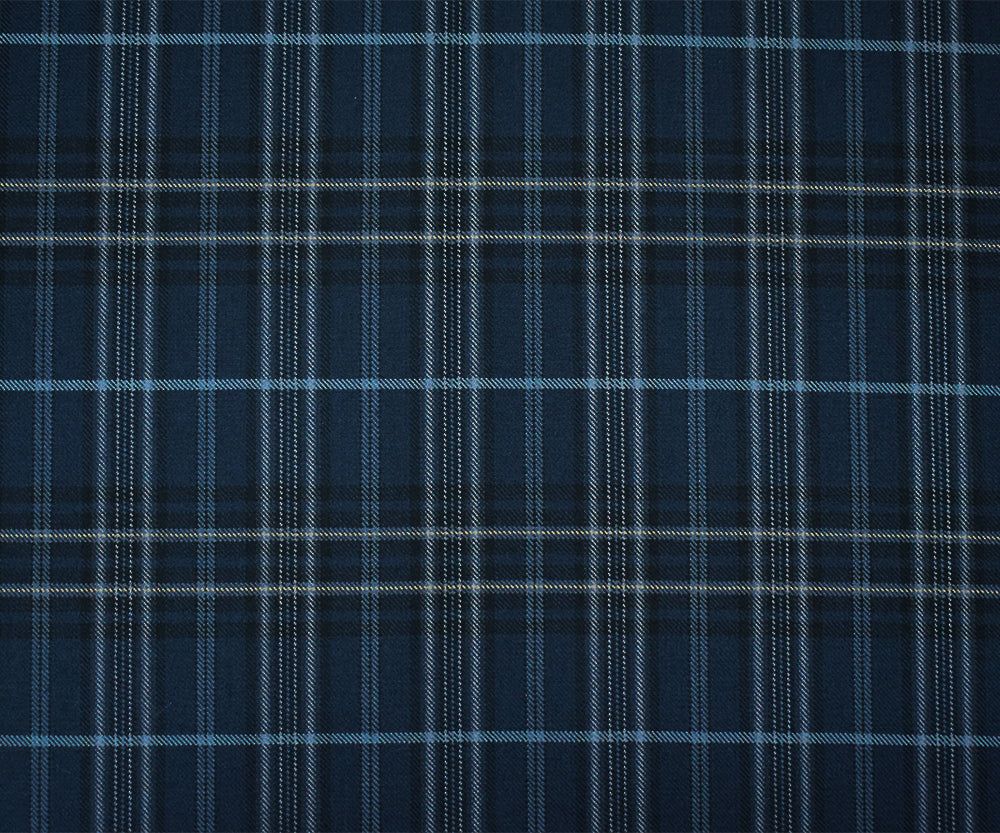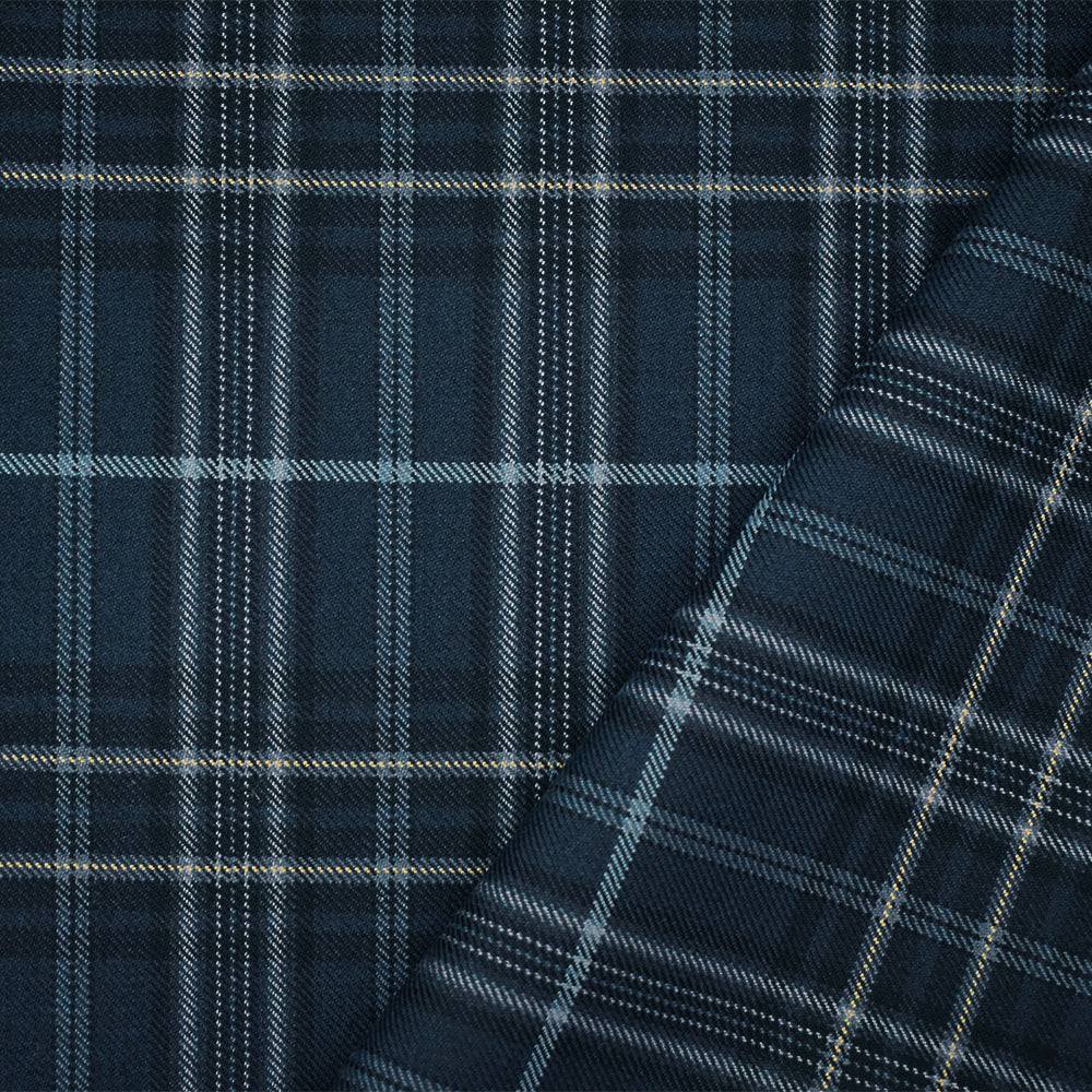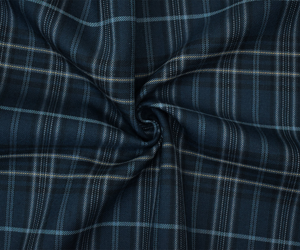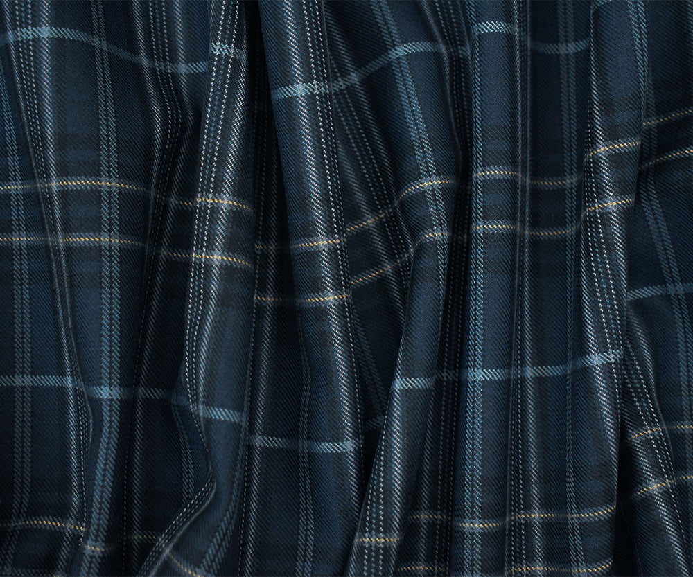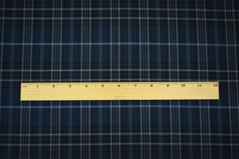Blue-Black-Multi Wool-Polyester Plaid Woven Twill Suiting Fabric