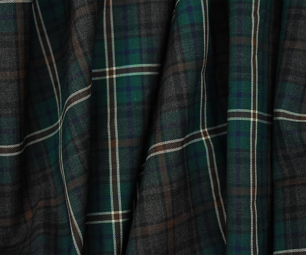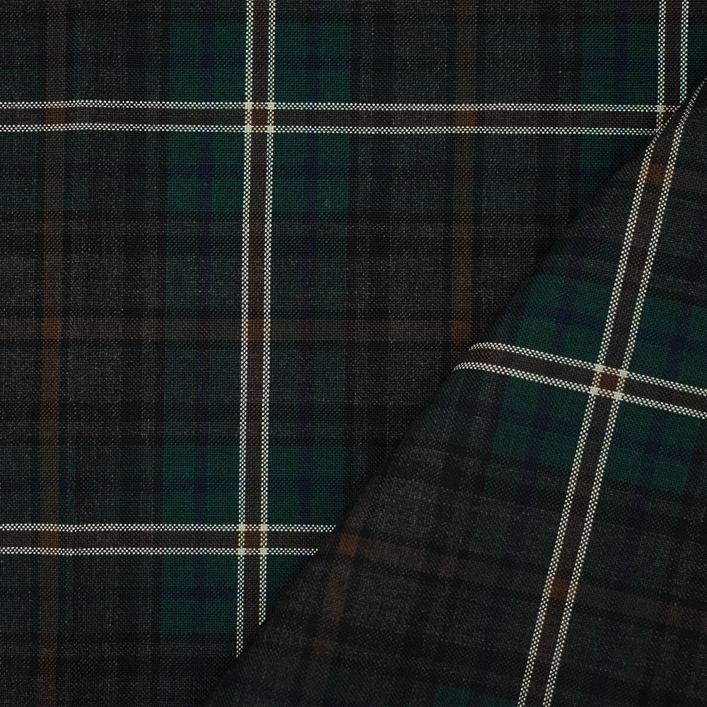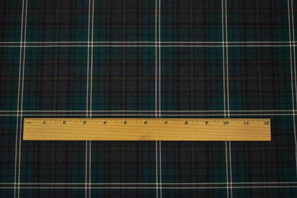 Brown-Green-Multi Wool Polyester Plaid Woven Shirting Fabric