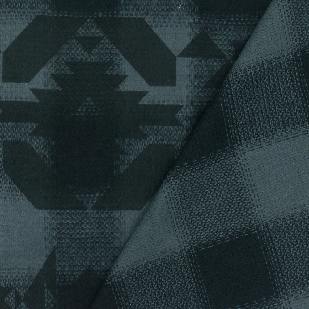 -100% cotton check patterned dobby woven fabric printed with a tribal inspired pattern
