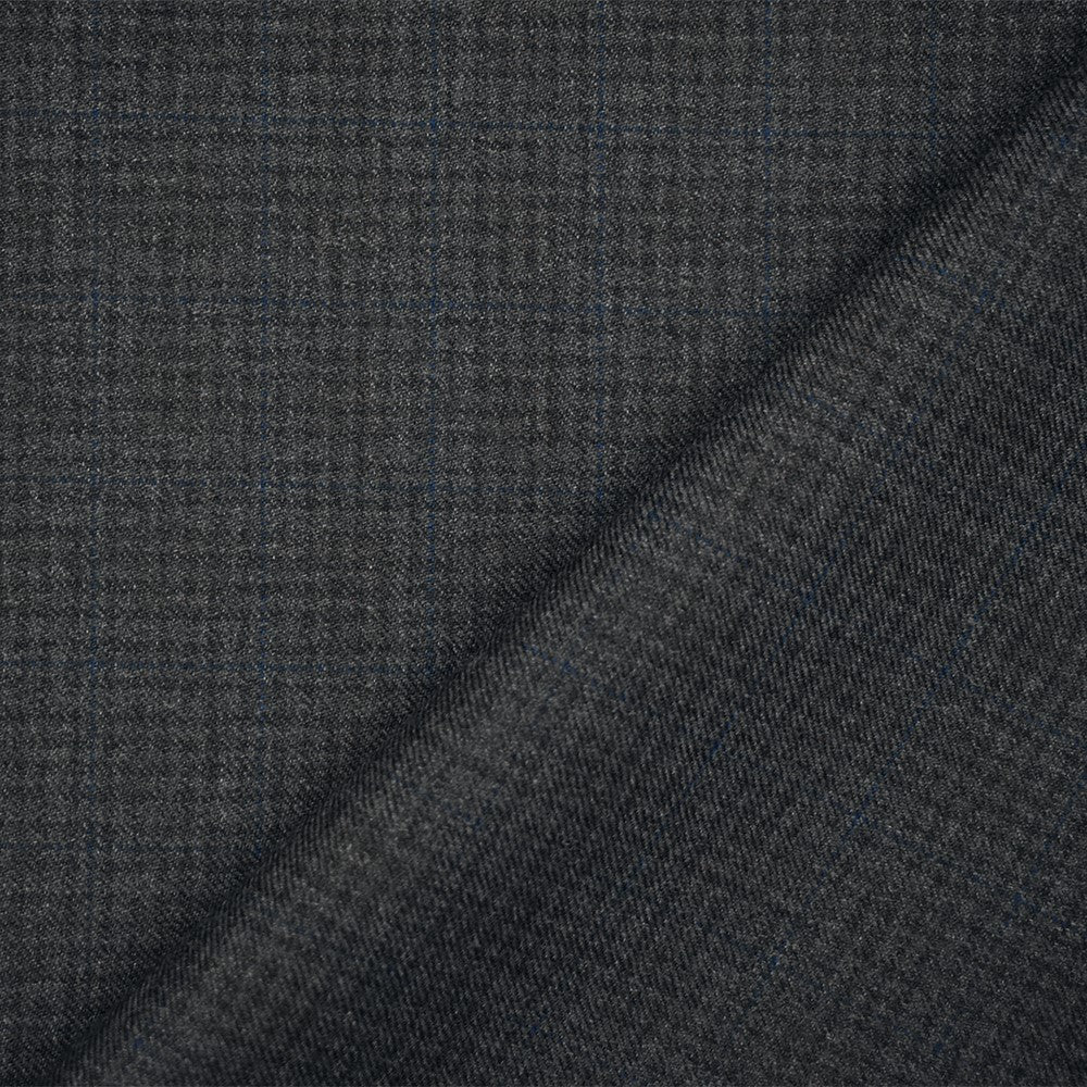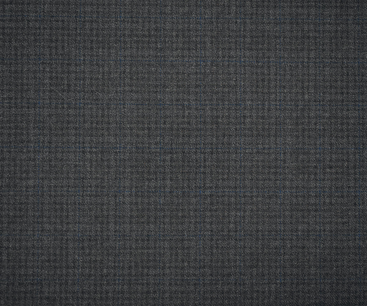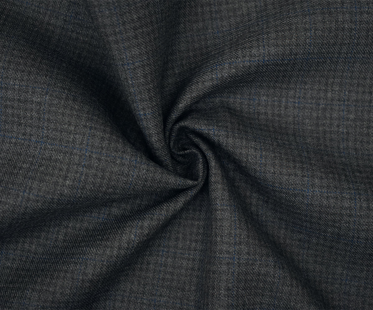Gray-Black-Blue Wool Polyester Check Twill Plaid Suiting Woven Fabric