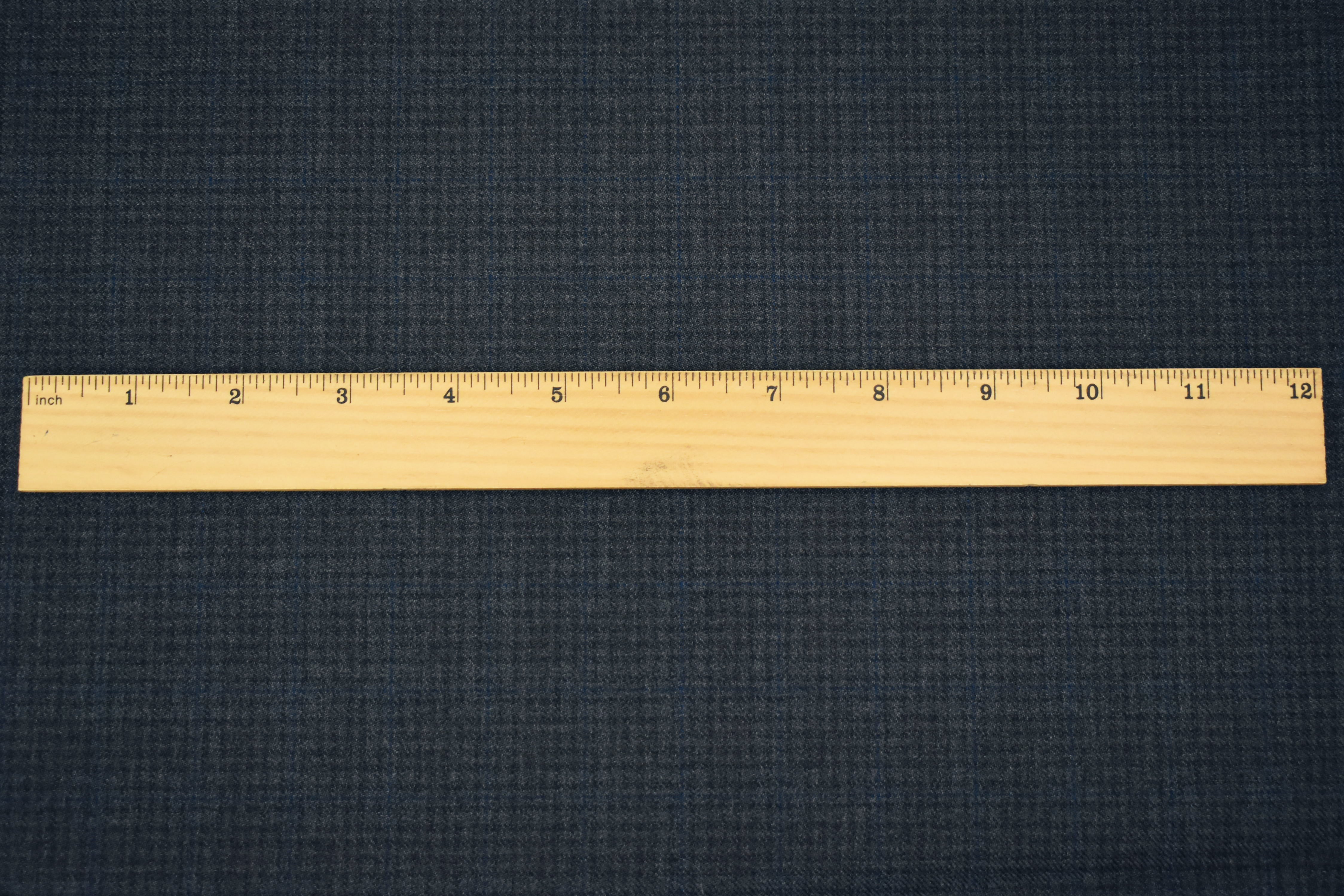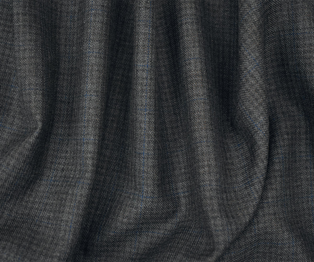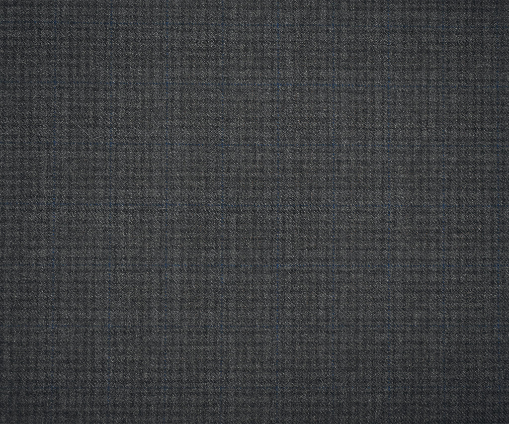 Gray-Black-Blue Wool Polyester Check Twill Plaid Suiting Woven Fabric