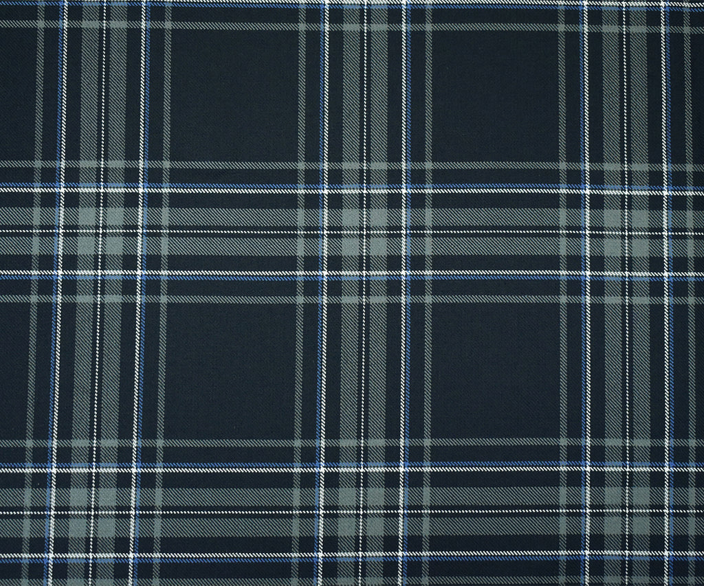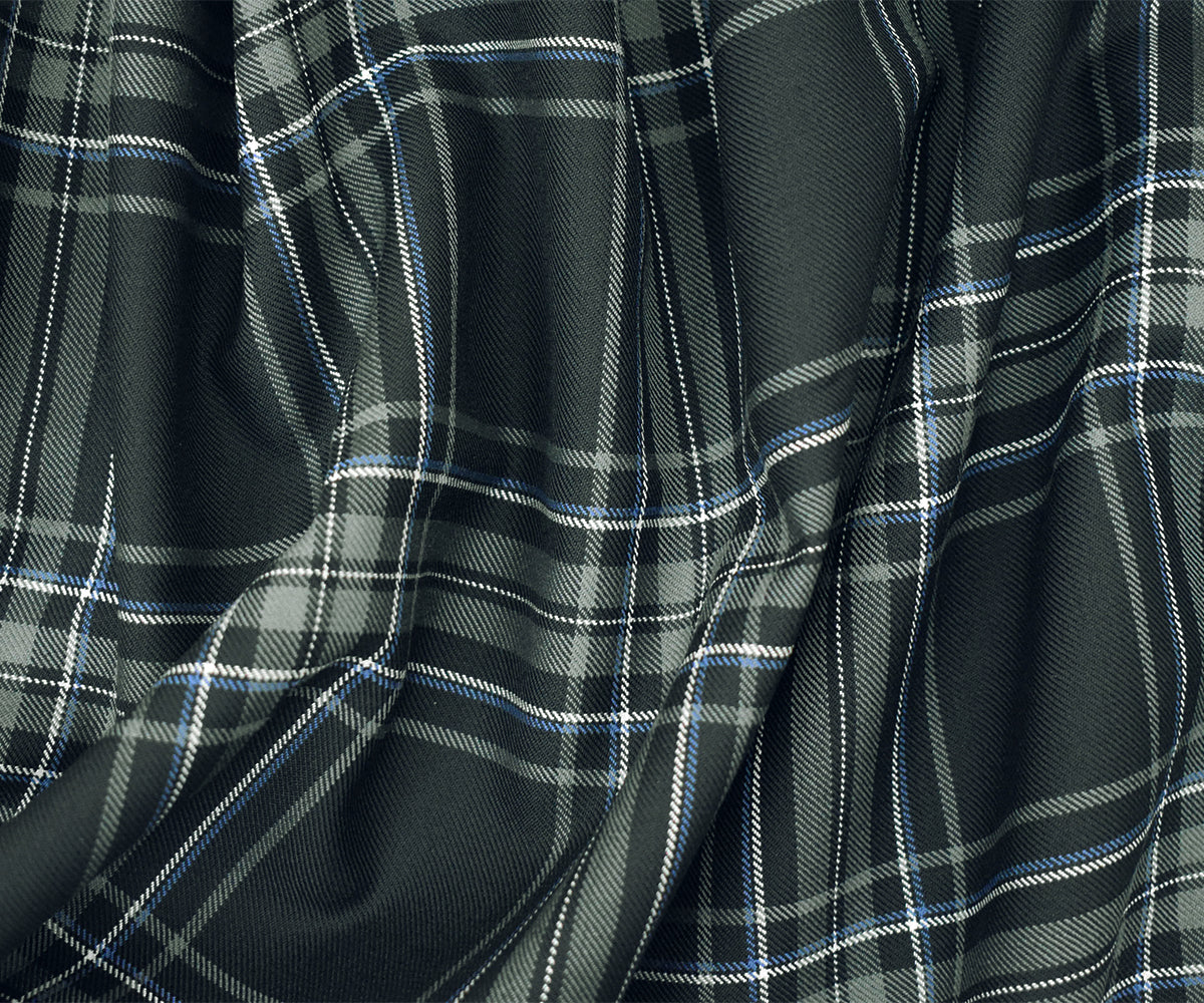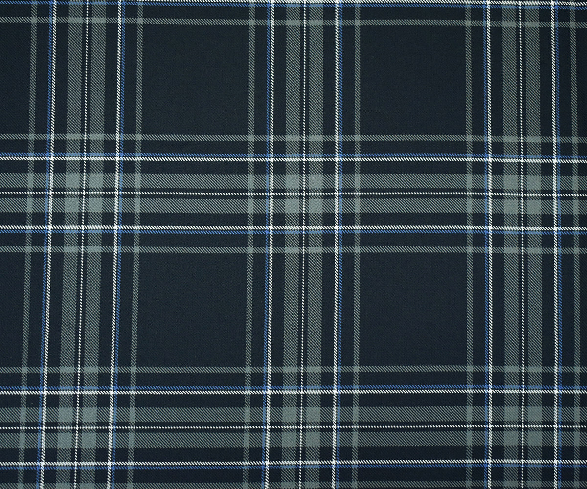 Gray-Blue-Multi Wool Polyester Plaid Twill Suiting Woven Fabric