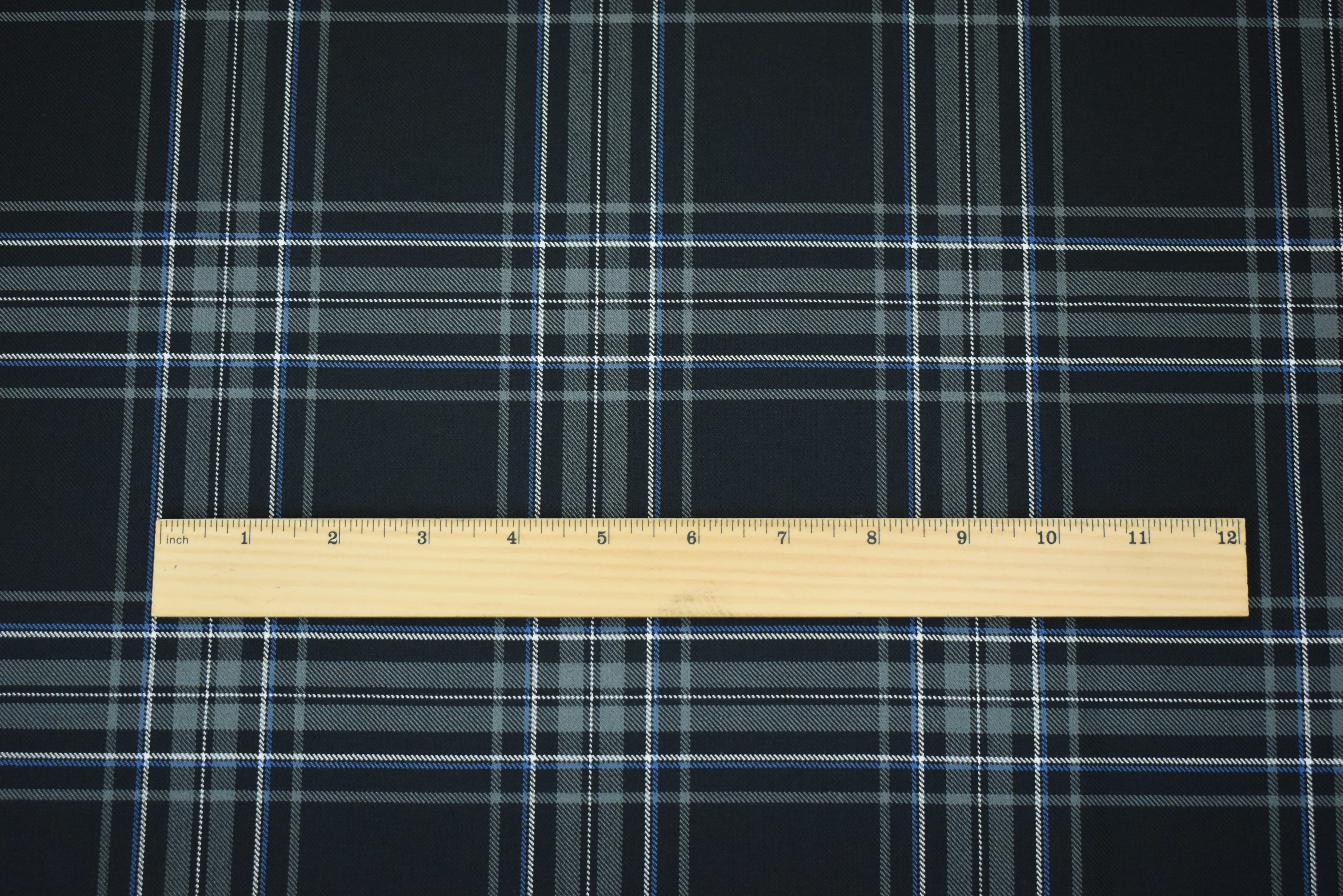 -Wool and polyester blend plaid/check pattern twill woven suiting fabric. Made in Japan.