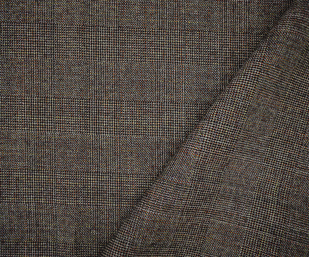 Gray-Red-Multi Wool-Poly Check Texture Suiting Woven Fabric