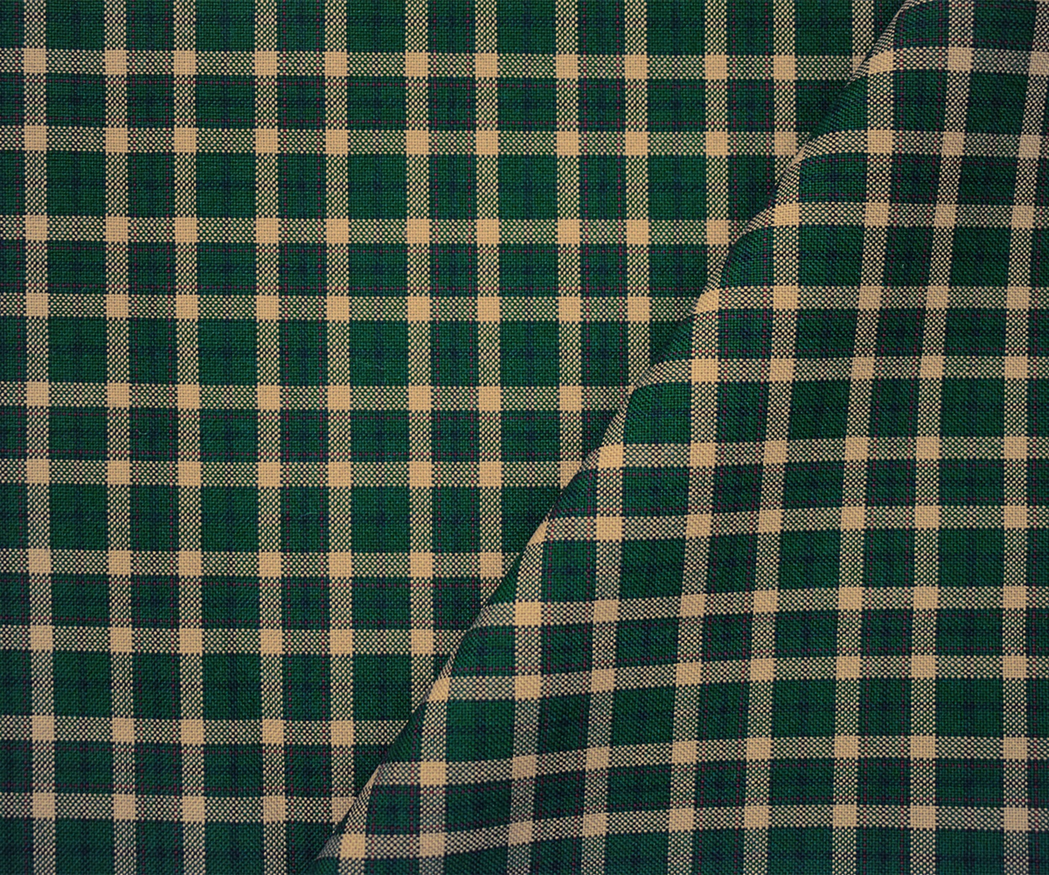 Green-Beige-Multi Wool-Poly Plaid Woven Shirting Fabric