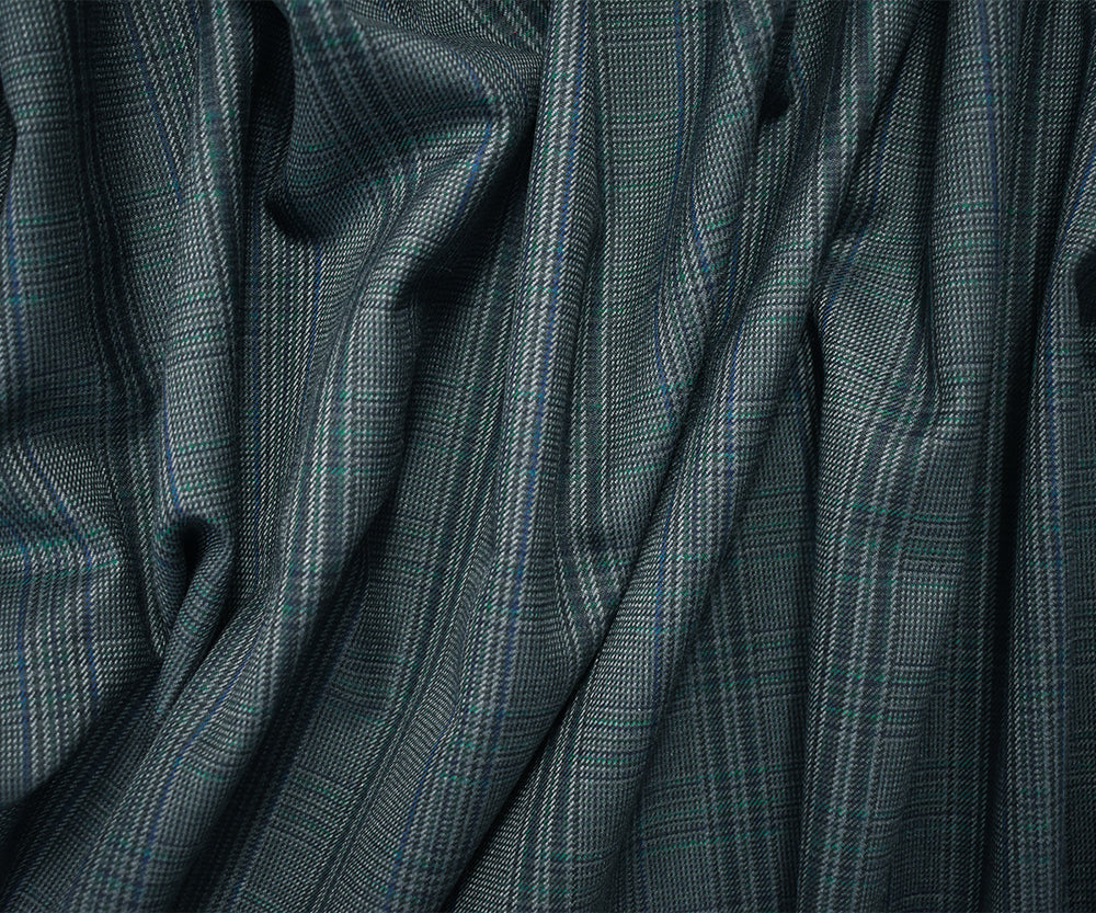 Green-Blue-Multi Wool-Poly Japanese Plaid Woven Suiting Fabric