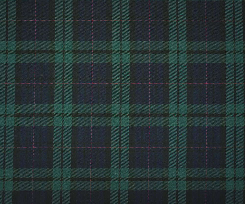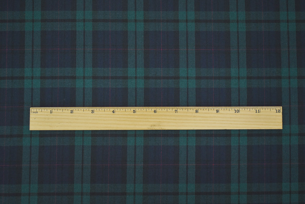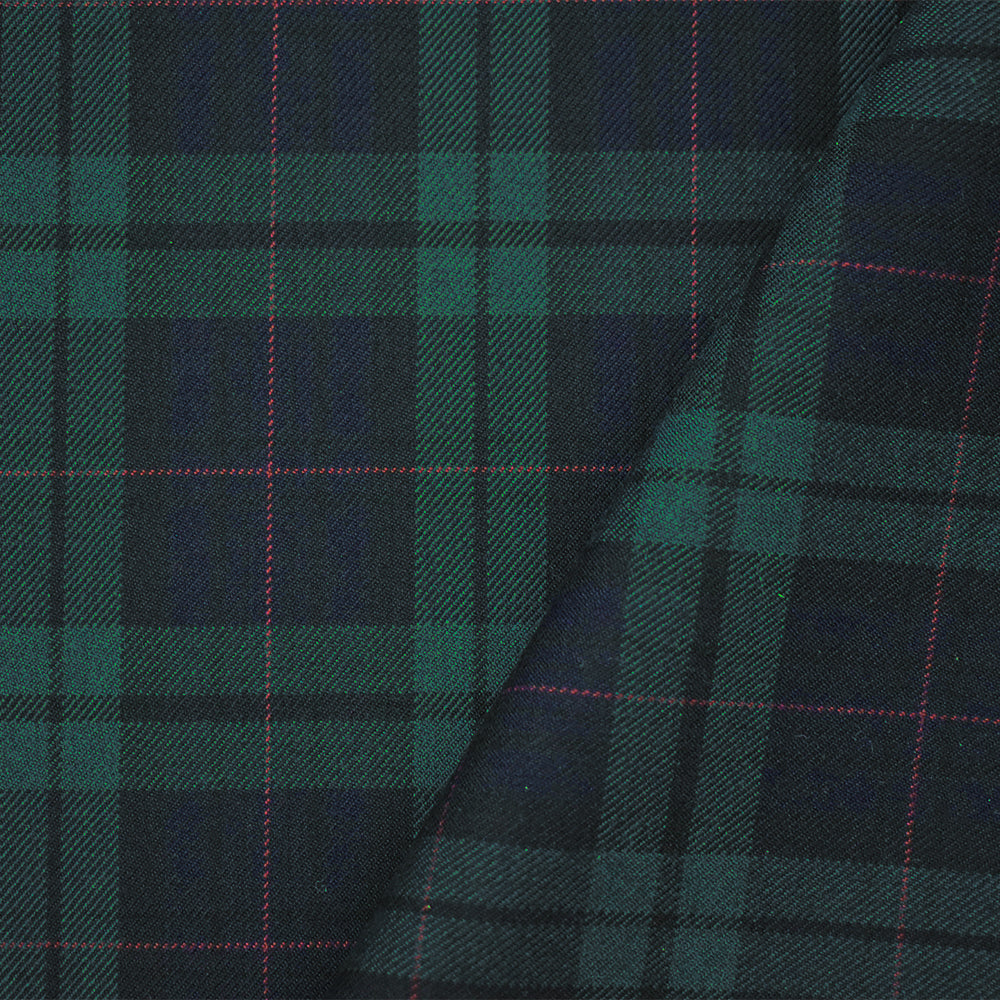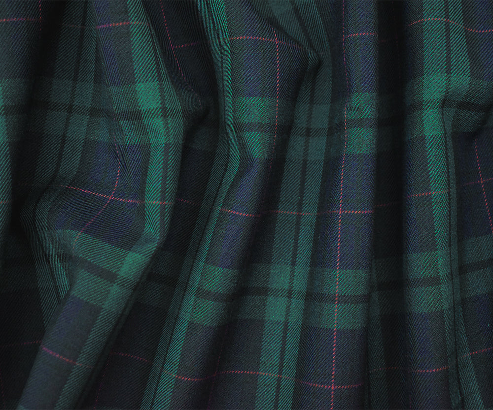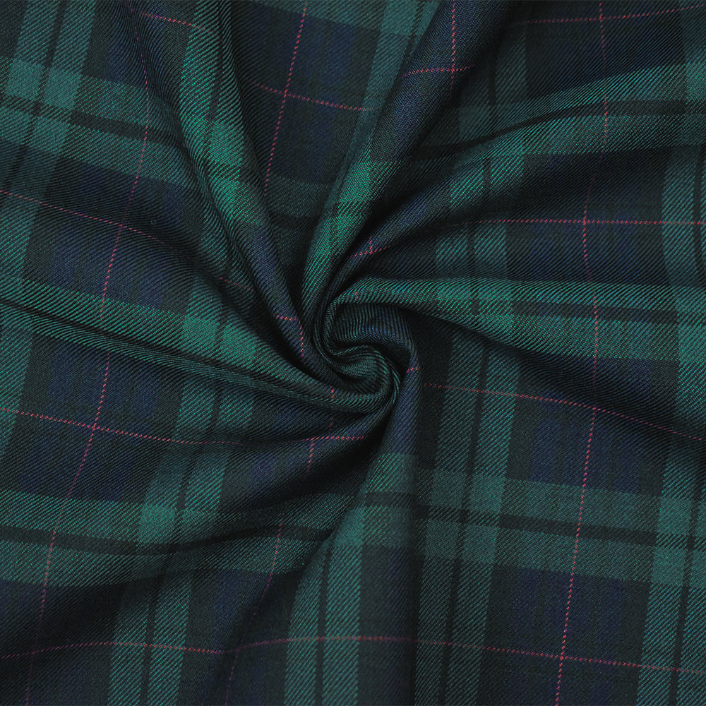 Green-Blue-Multi Wool-Poly Plaid Check Woven Twill Suiting Fabric