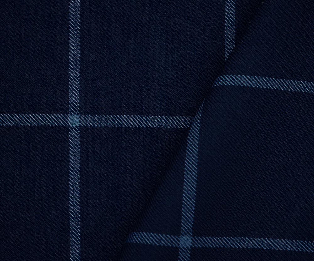 Navy-Light Blue Wool Polyester Check Twill Woven Suiting Fabric