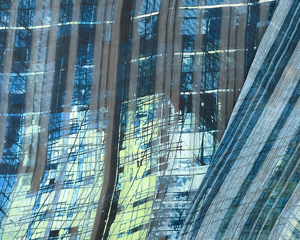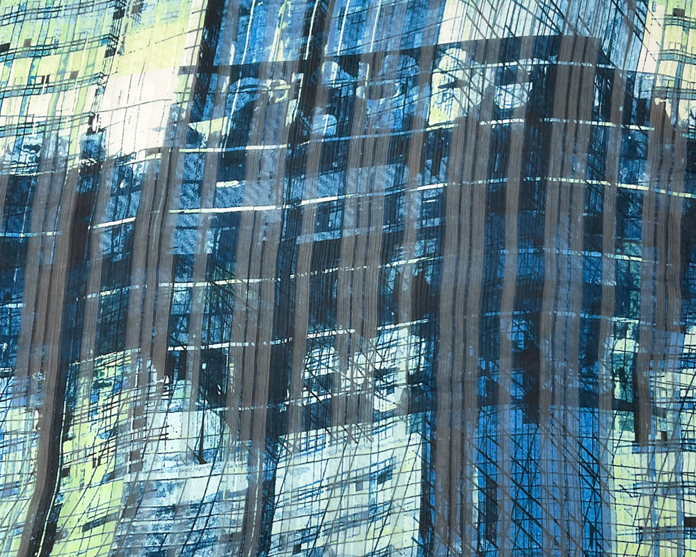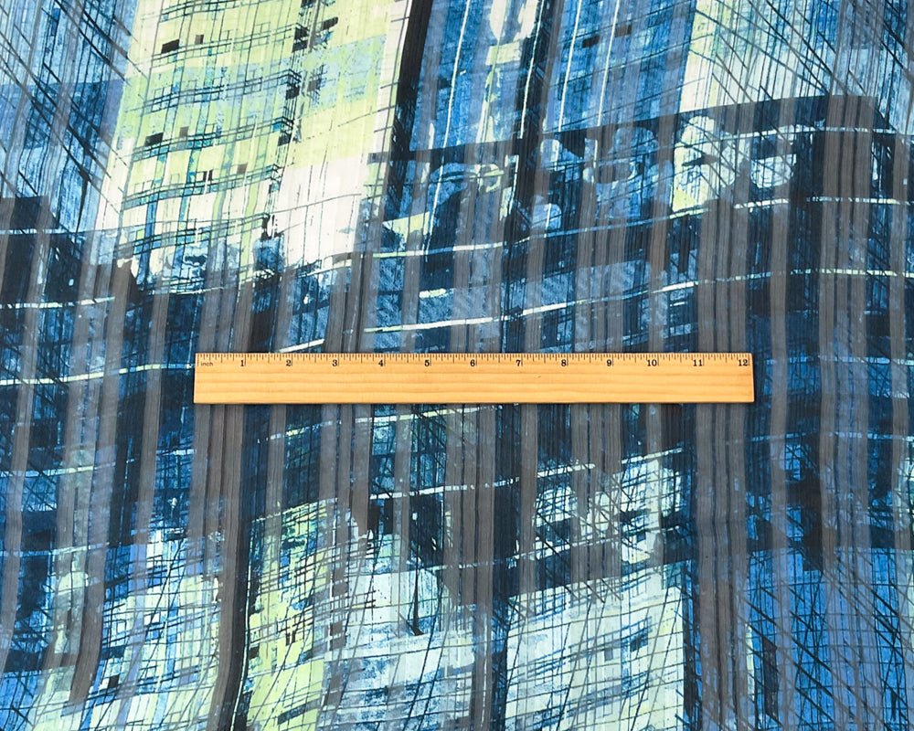 Blue-Multi Poly Abstract Print Satin Stripe Chiffon Woven Fabric