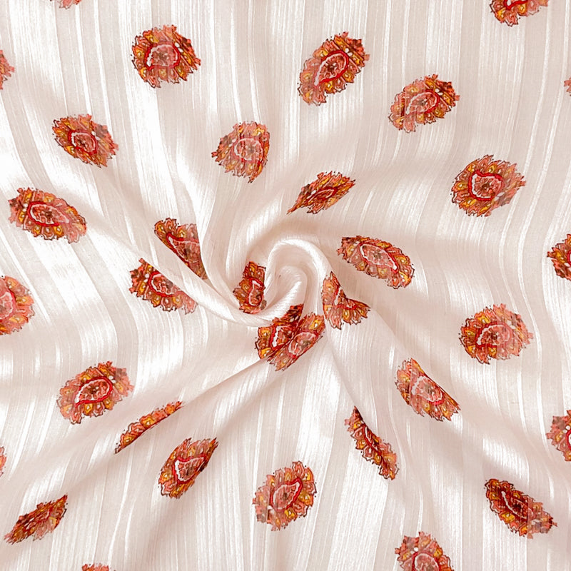 Pink-Multi Poly Paisley Printed Stripe Satin Chiffon Woven Fabric