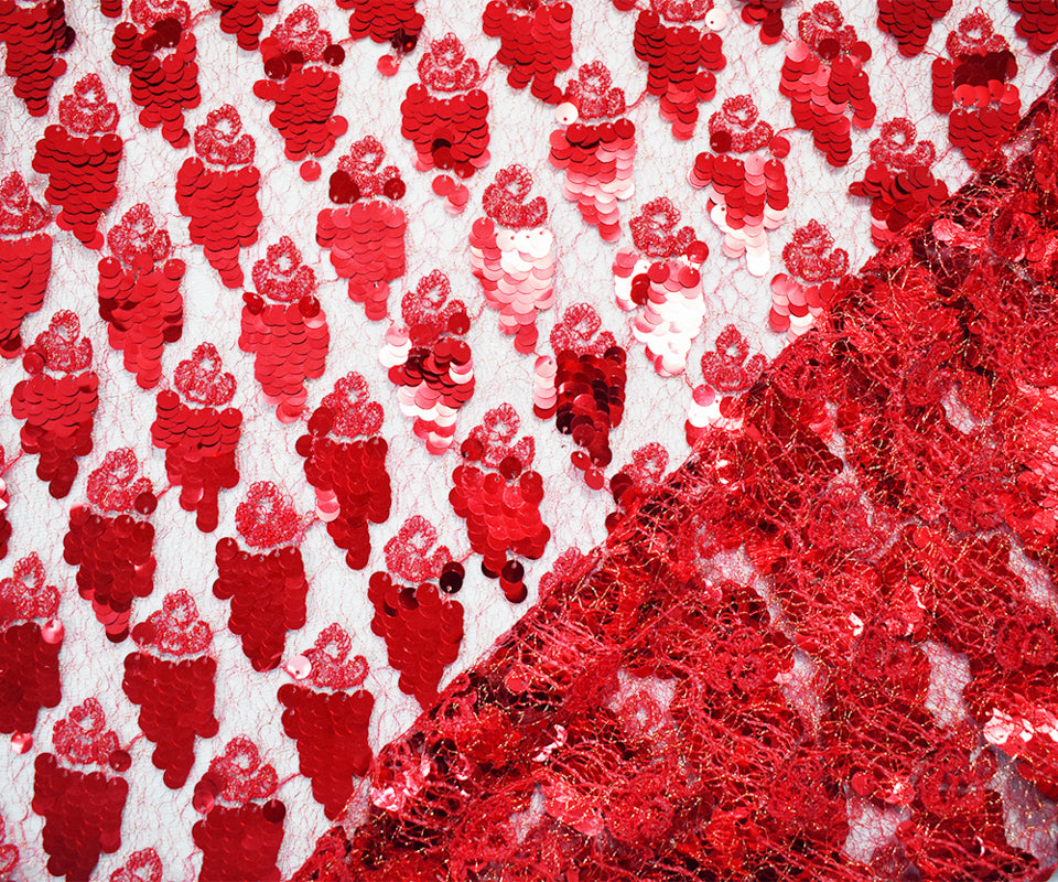 Red-Gold Metallic Poly Sequined Crochet Lace Knit Fabric