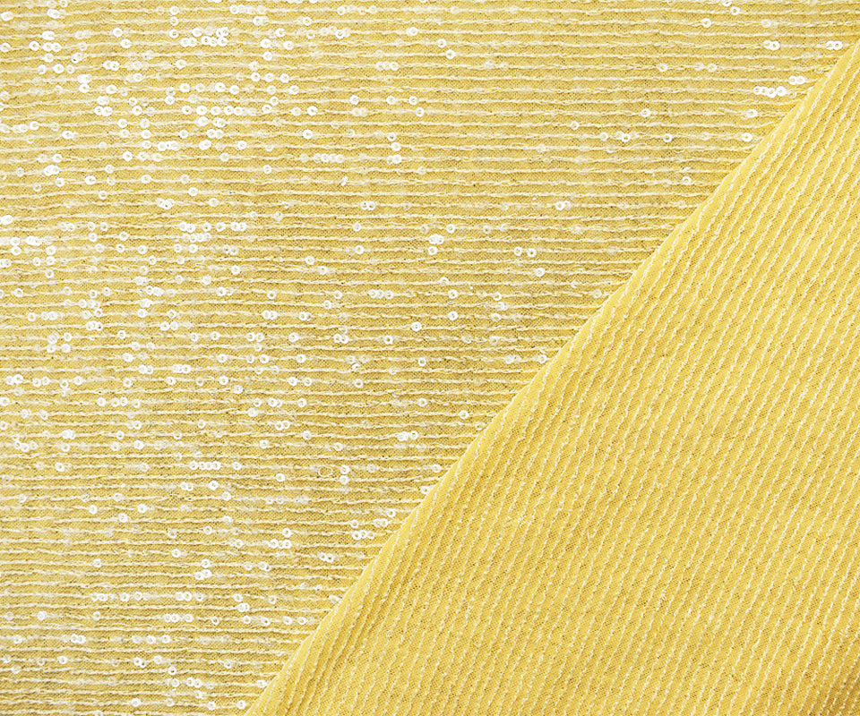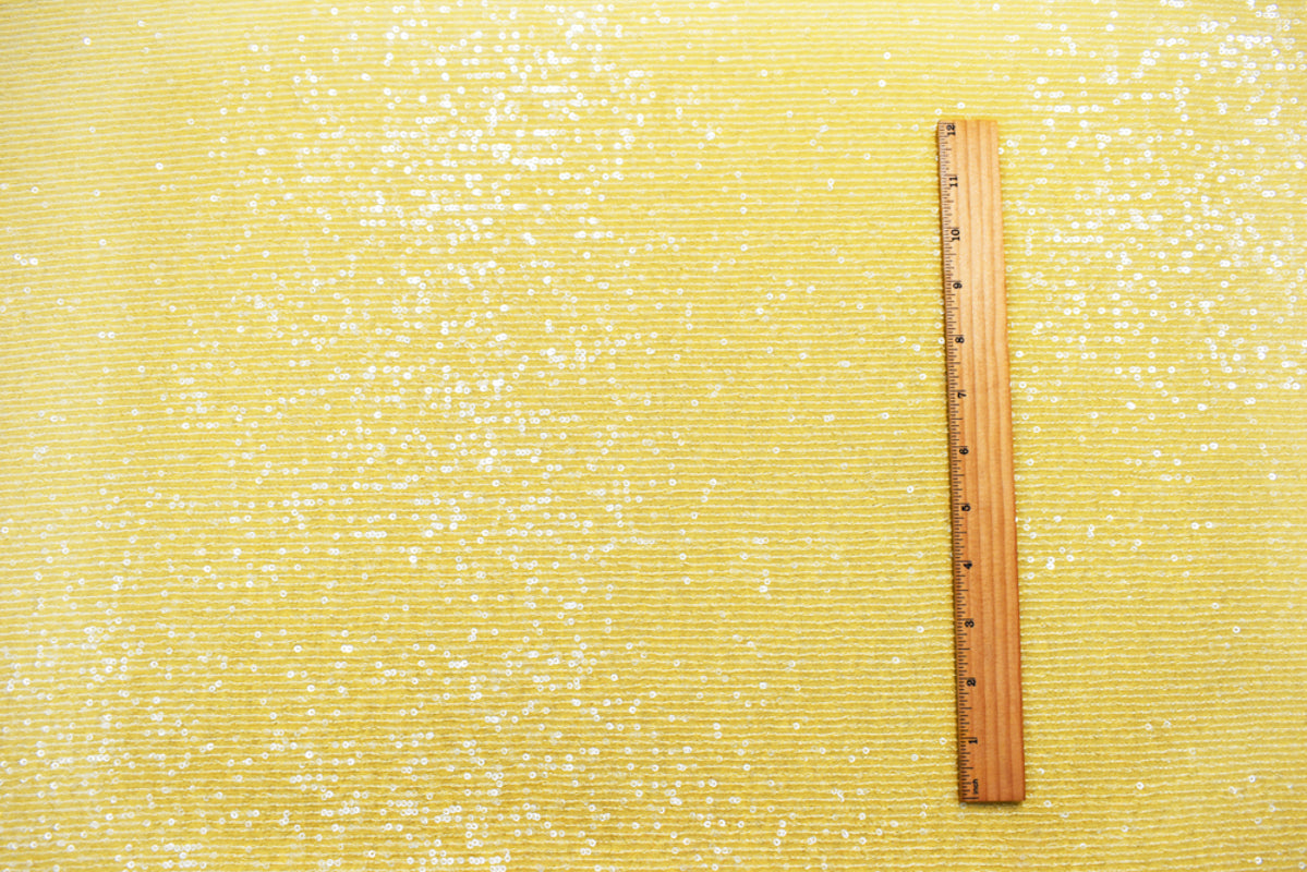 Yellow Nylon Blend Sequined Stretch Spandex Mesh Knit Fabric