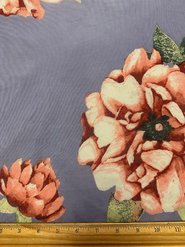 Periwinkle Multi Floral Print Stretch Mesh Fabric